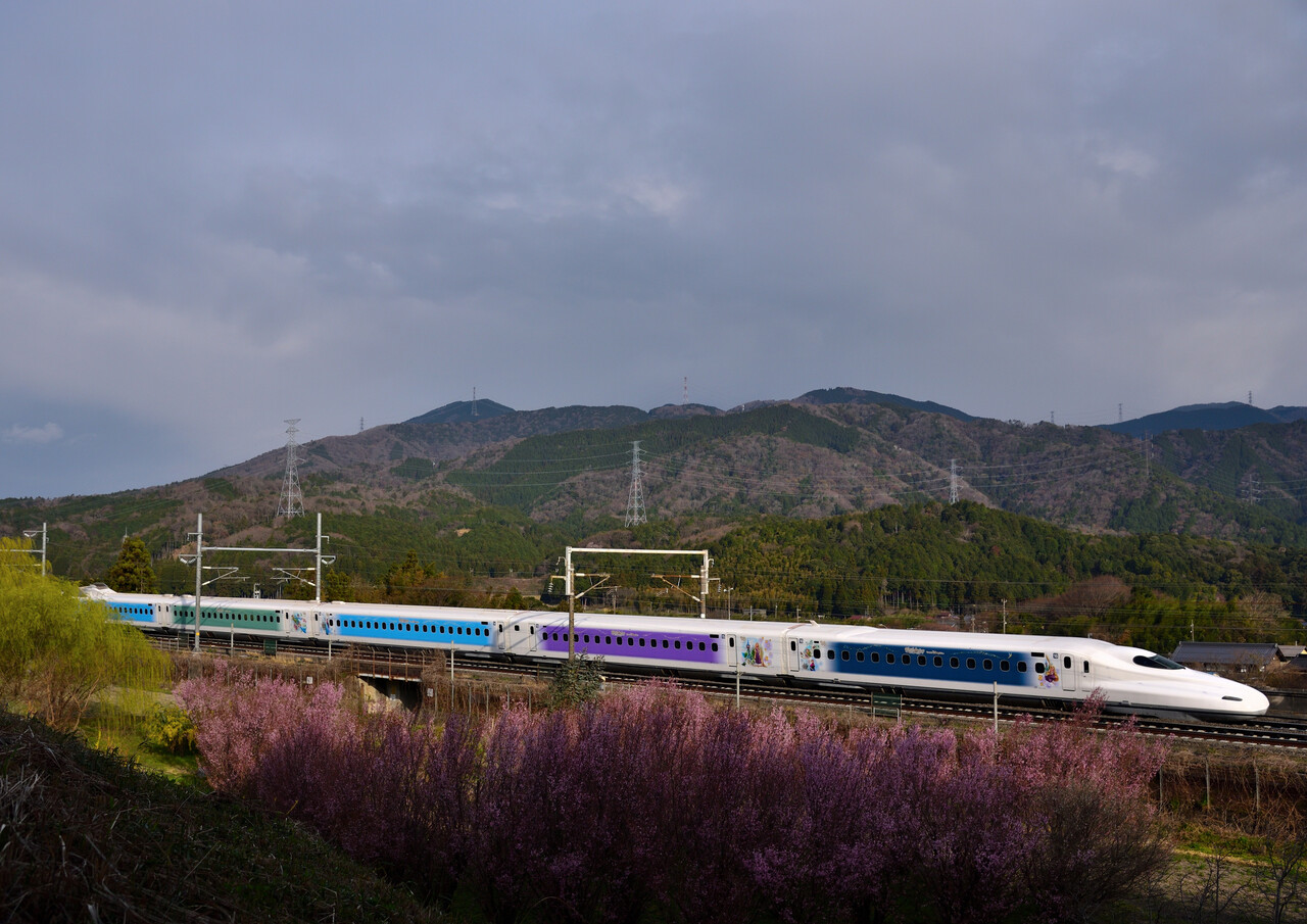 2025年03月25日 Wonderful Dreams Shinkansen:3/23③ この日、三度目の『Wonderful Dreams Shinkansen』は・・・。3月23日 1/2500 f/8 -0.3補正 ISO-360 米原~岐阜羽島間3月23日 1/2500 f/8 -0.3補正 ISO-360 米原~岐阜羽島間一番華やかな所から撮ってみました。この2~3日で一気に季節が進み、いよいよ春が来たという感じでした。