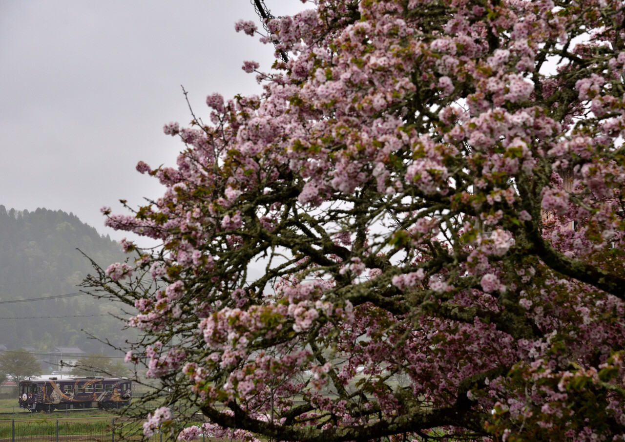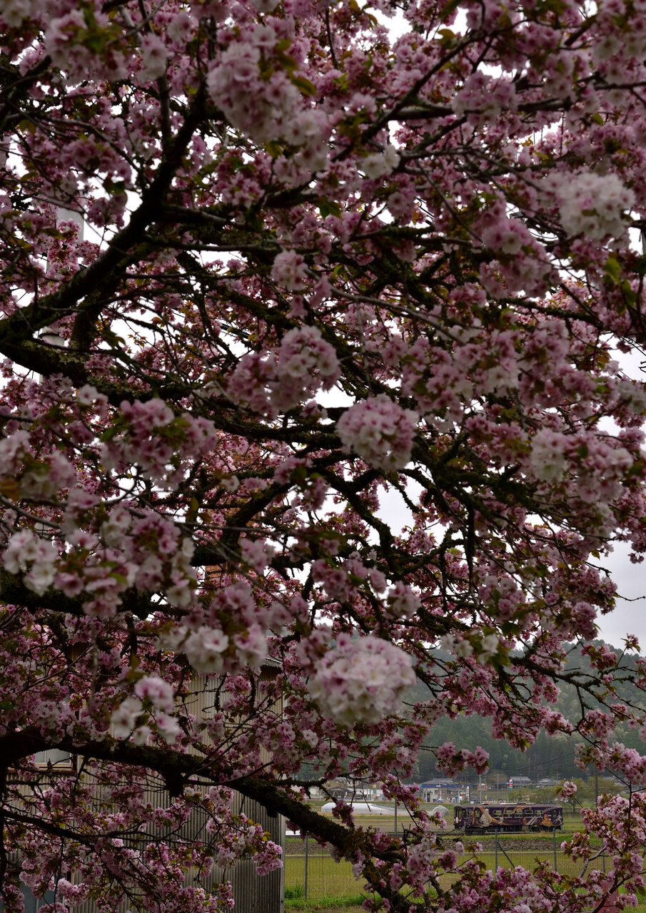 4月21日 1/800 f/8 ISO-640 信楽高原鐵道 勅旨~玉桂寺前間ここの八重桜もちょうど満開でした。色んな角度から見てみると