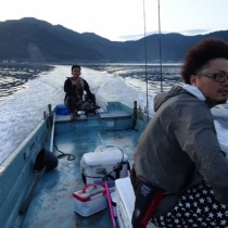 ウネリと風で船流すのも船の上で立つのも困難な状況…(笑)