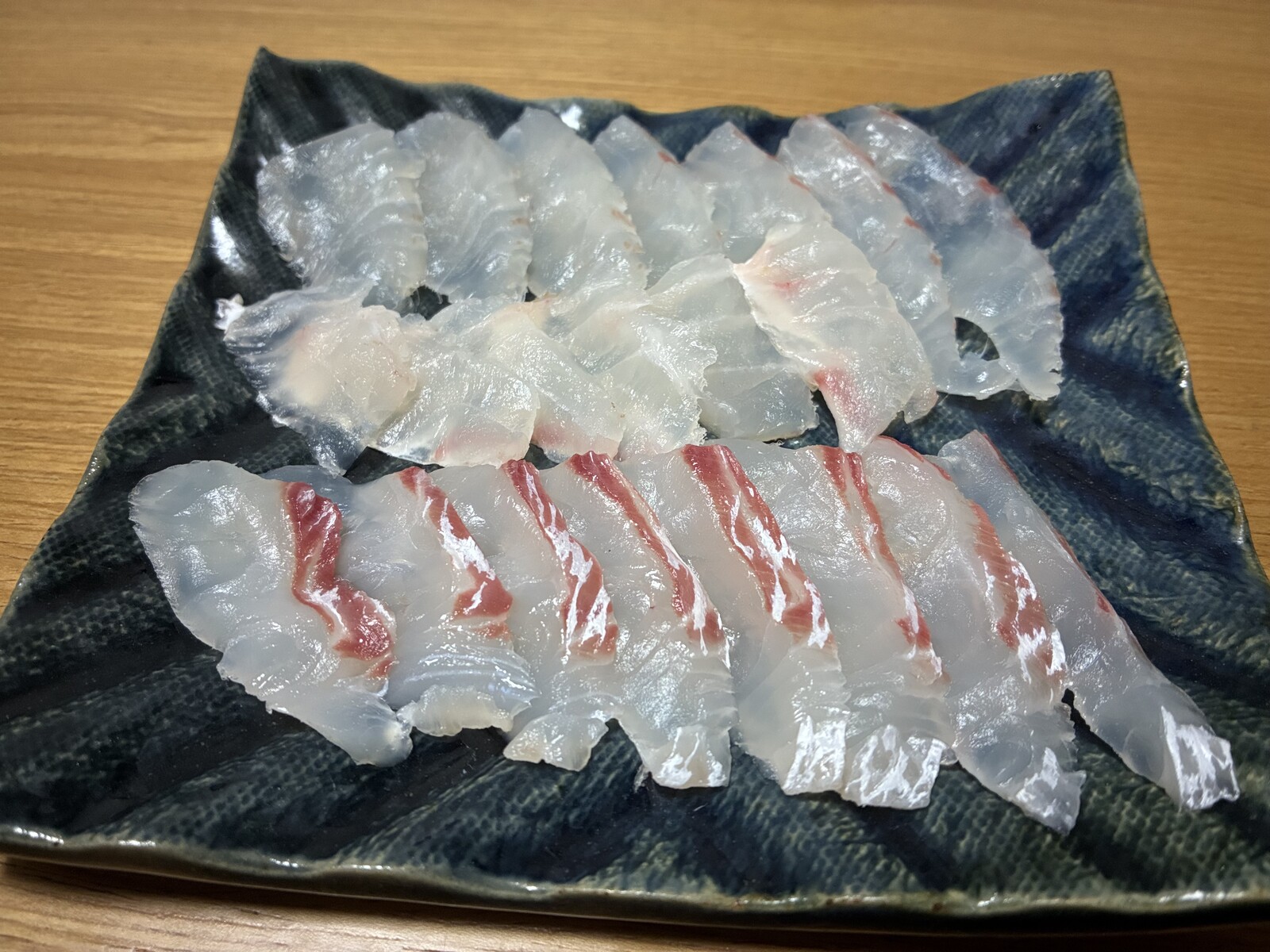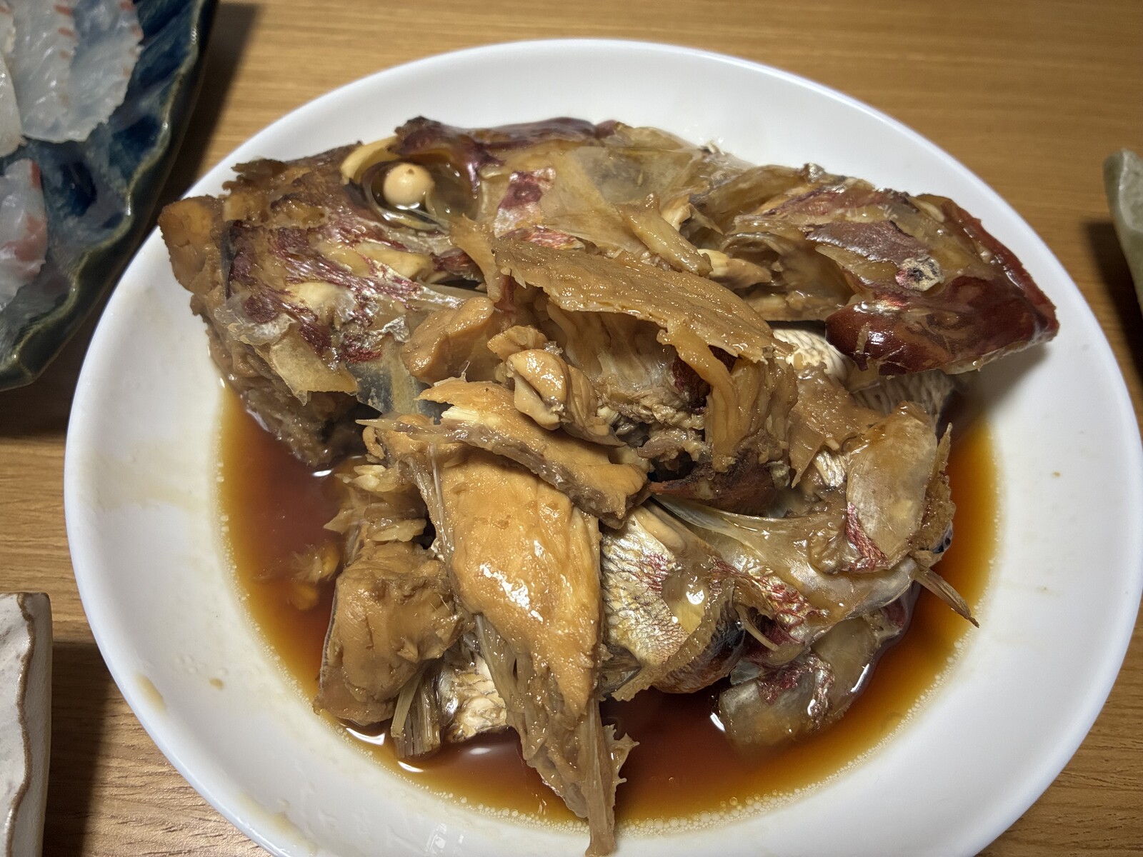 食卓には冷凍保存の鮎の一夜干し、次回こそは新鮮な青物の刺身が食べられますように(笑)