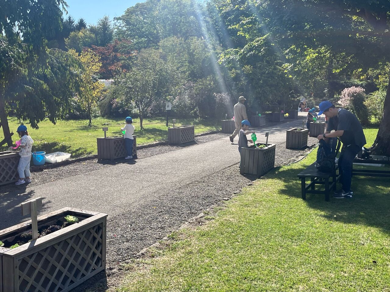 最後に、ゾウさんじょうろを使って水やりのほうもしてもらいました!!