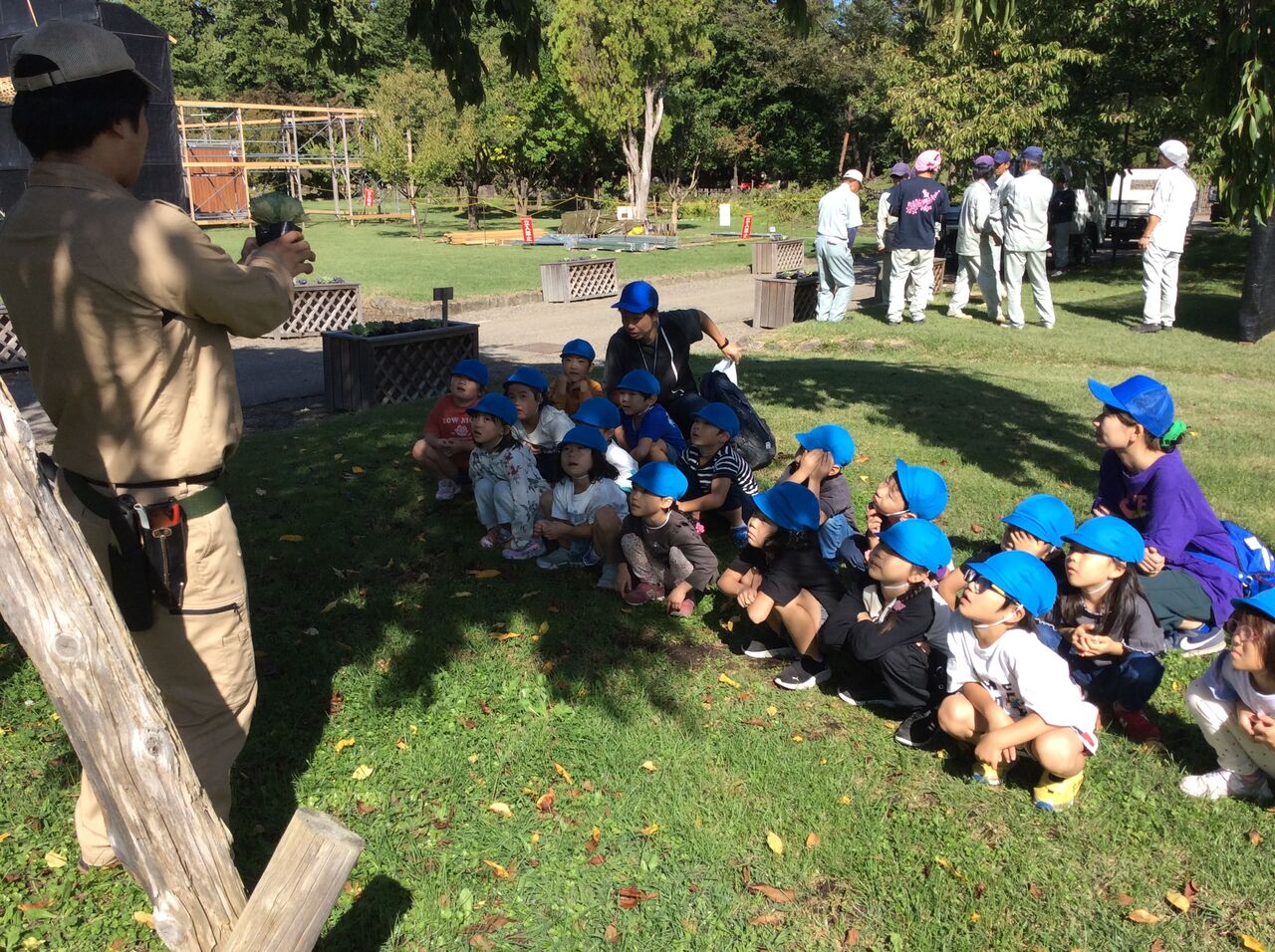 本日、植物園で富士見保育園の児童17名が園内の中央プランターにハボタンを植栽してくれました!