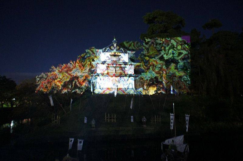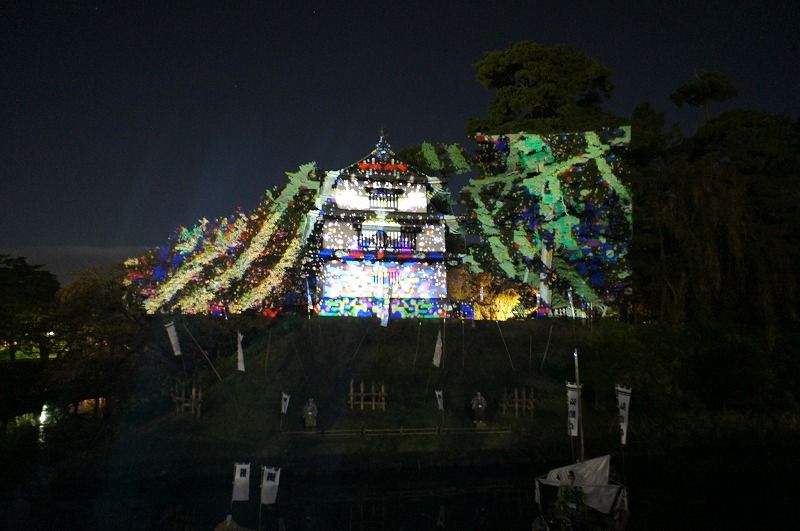 2011年11月10日 弘前城菊と紅葉まつり日没からのイベント 「弘前城菊と紅葉まつり」日没からのイベント DーK LIVE(デジタル掛け軸)を11月9日(水)〜11月12日(土)の4日間開催されます。 実施場所 弘前城天守、辰巳櫓 弘前城植物園内からは、辰巳櫓へ写し出される「デジタル掛け軸」が観れますよ(⌒-⌒) この4日間は、弘前城植物園の開園時間を2時間延長し、19:00まで開園します。しかも17:00〜19:00の間は入園料無料です!!! 9日に実施された辰巳櫓デジタル掛け軸の画像を紹介ます。 弘前城植物園内から観た辰巳櫓です。 ↓Instagramやってます↓