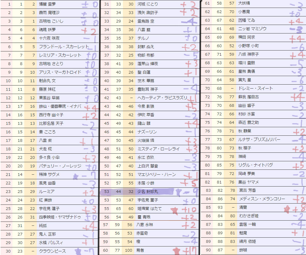 やはり正邪ちゃんと…!! こちらはなんと15位! これはすごい!