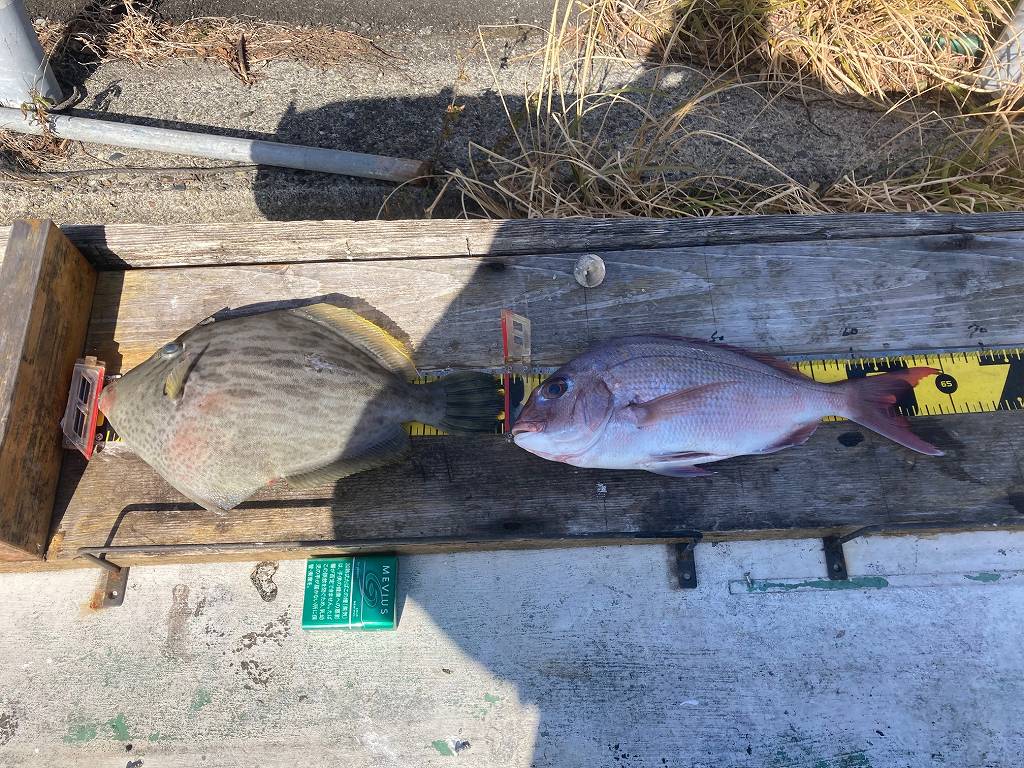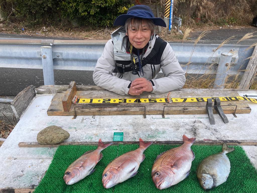 2026年01月30日 「激シブ続きです…」マダイ 28〜45 6枚、絶品ハゲ 1枚、マダイ 52cm、アオリイカ 1.4キロ カテゴリ:船釣り(カセ・沖釣り)お知らせ by syorasan 奈良からお越しの赤鬼さん、マダイ 28〜45cm 6枚、絶品ハゲ 1枚沖アミ餌使用の完全フカセにて… ウネリと西北西で 釣りにくい状況でした。「赤鬼夫婦釣行記」近日、公開予定です♪===============================大阪からお越しの中西さんら、マダイ 52cm、アオリイカ 1.4キロ 極寒の中 お疲れ様でした♪【お知らせ】待合所にて無料配布♪ 良かったら クーラーの片隅にでも貼ったって下さい😊 タグ :#和歌山#串本町#浦見湾内カセ釣り#かせ釣#釣果#マダイ#メジロ#ブリ#ハマチ#ヒラスズキ