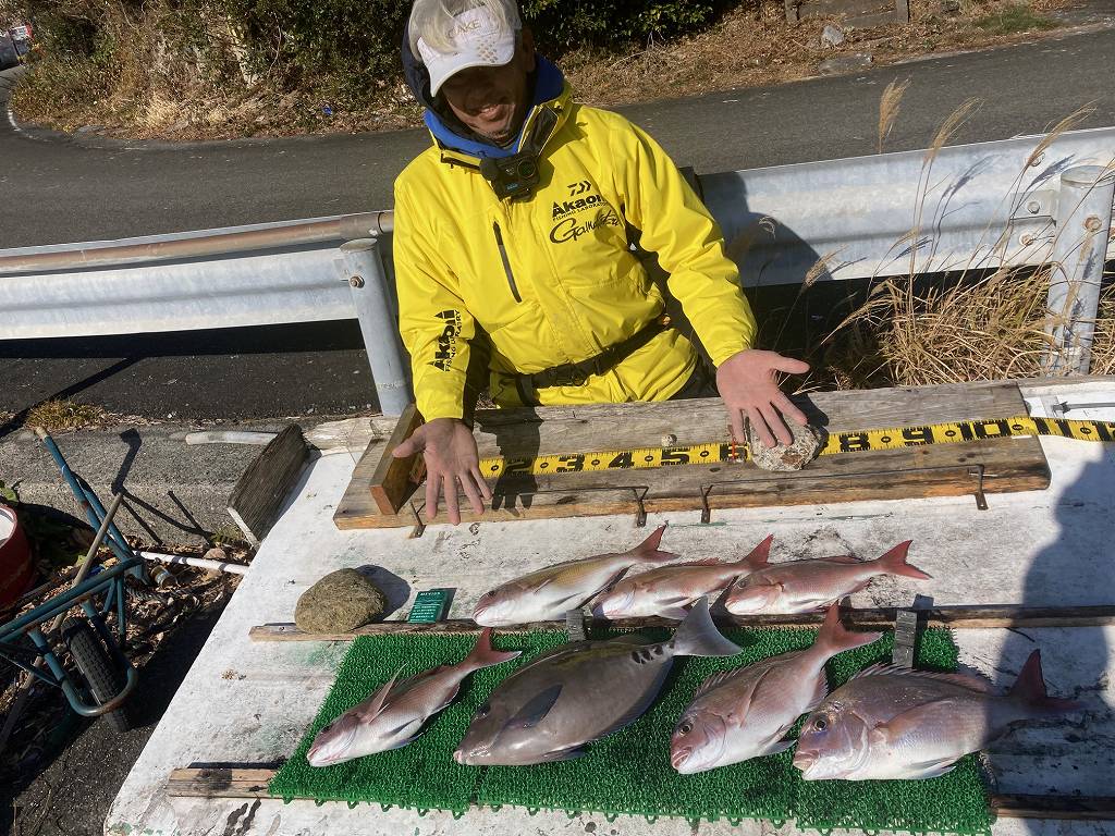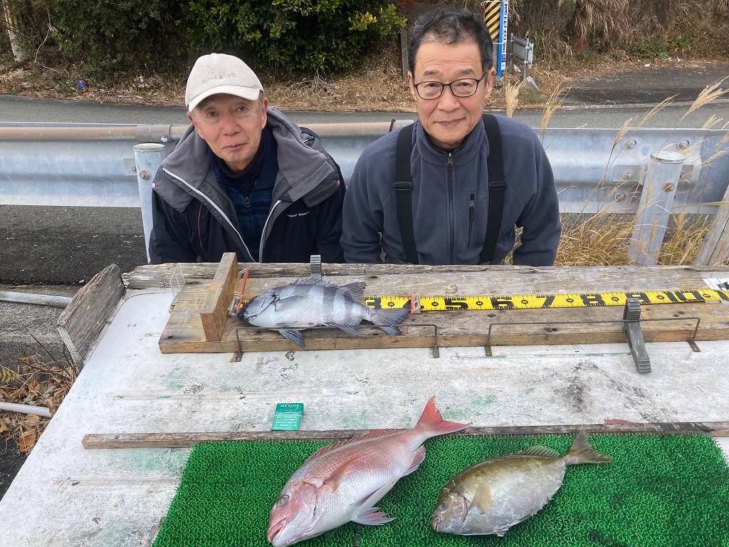 2026年02月06日 「渋いながらも…♪」マダイ 30〜44cm 3枚にアイのバリなど… カテゴリ:船釣り(カセ・沖釣り) by syorasan 大阪からお越しの藤井さんら、新規のお客様になります♪マダイ 30〜44cm 3枚にアイのバリなど…沖アミ餌使用の深ダナウキ仕掛けにて👍 他舟でも 新規のお客様 サンノジなど…湾内水温 低いながらも、少しずつ安定して来ました♪明日も出船します…===============================2/25(水) カイロス撃ち上げ🚀予定日、満船になりました🙇 タグ :#和歌山#串本町#浦見湾内カセ釣り#かせ釣#釣果#マダイ#メジロ#ブリ#ハマチ#ヒラスズキ