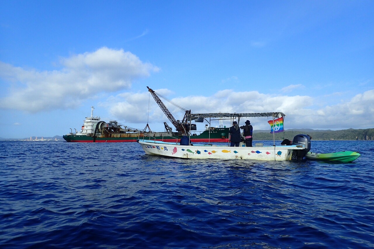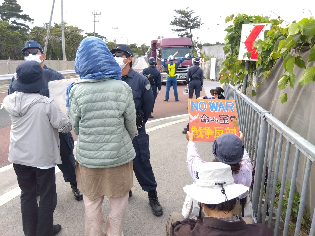 海からも陸からも、辺野古・大浦湾の海を埋め立てるための土砂、石、セメント、海砂などが次々と現場に運び込まれています。沖縄の自然を奪いながら、沖縄の海を壊している現場です。