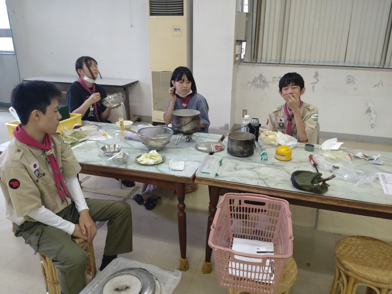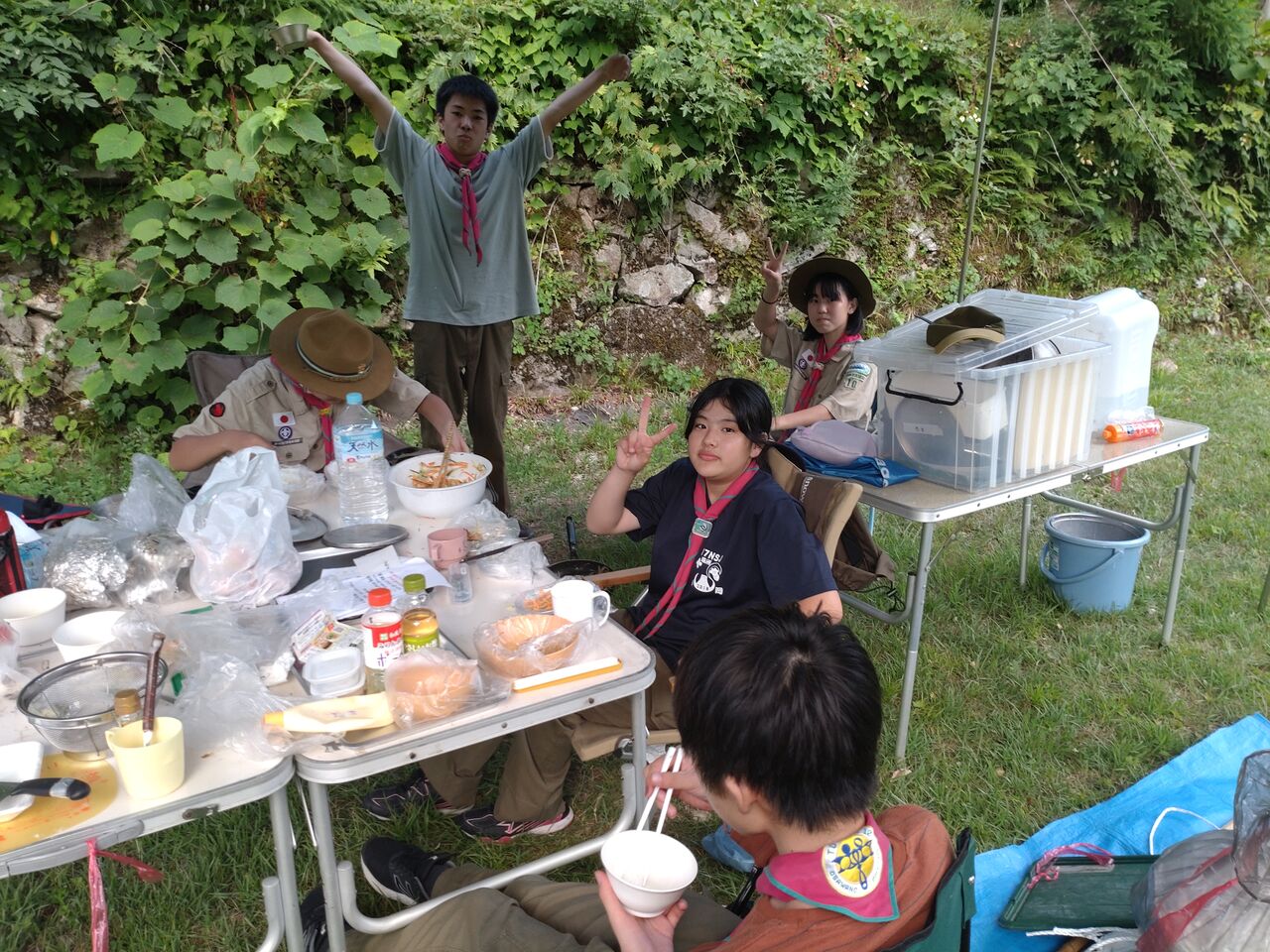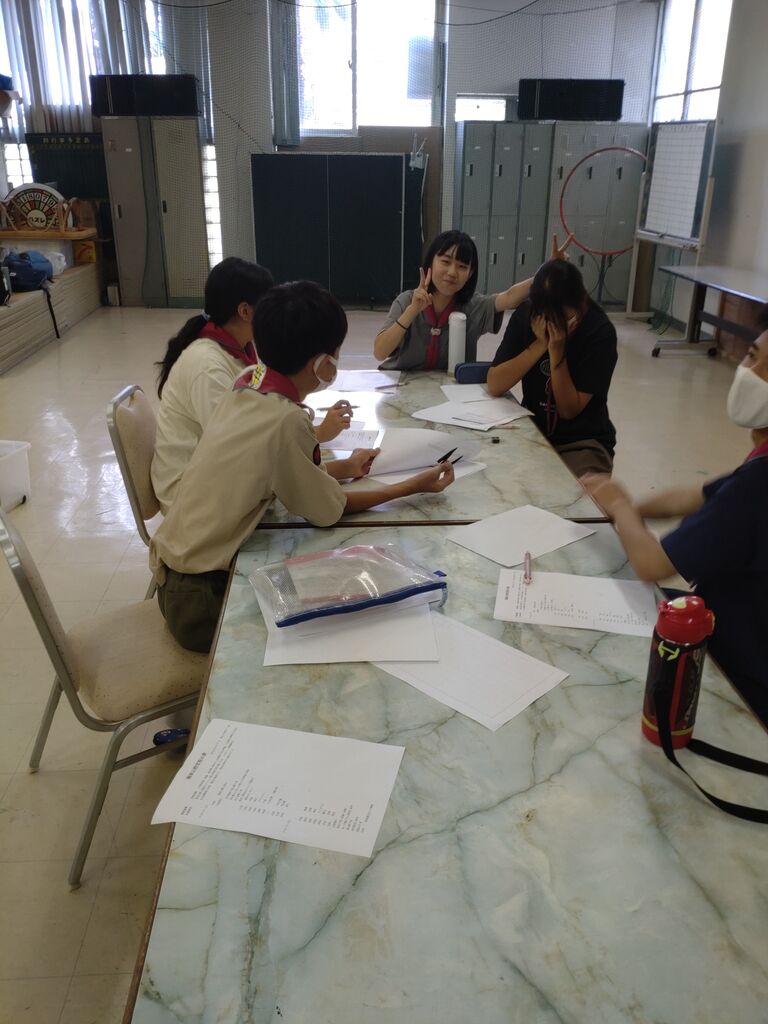 班集会は全員参加、BP祭の出し物の相談と班炊事、ソング練習と歩測を行いました。