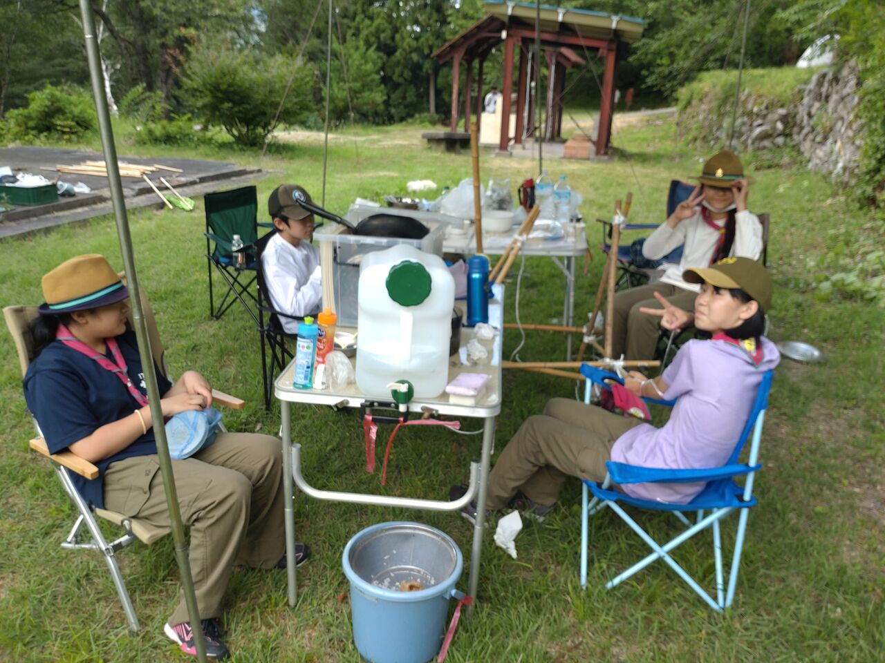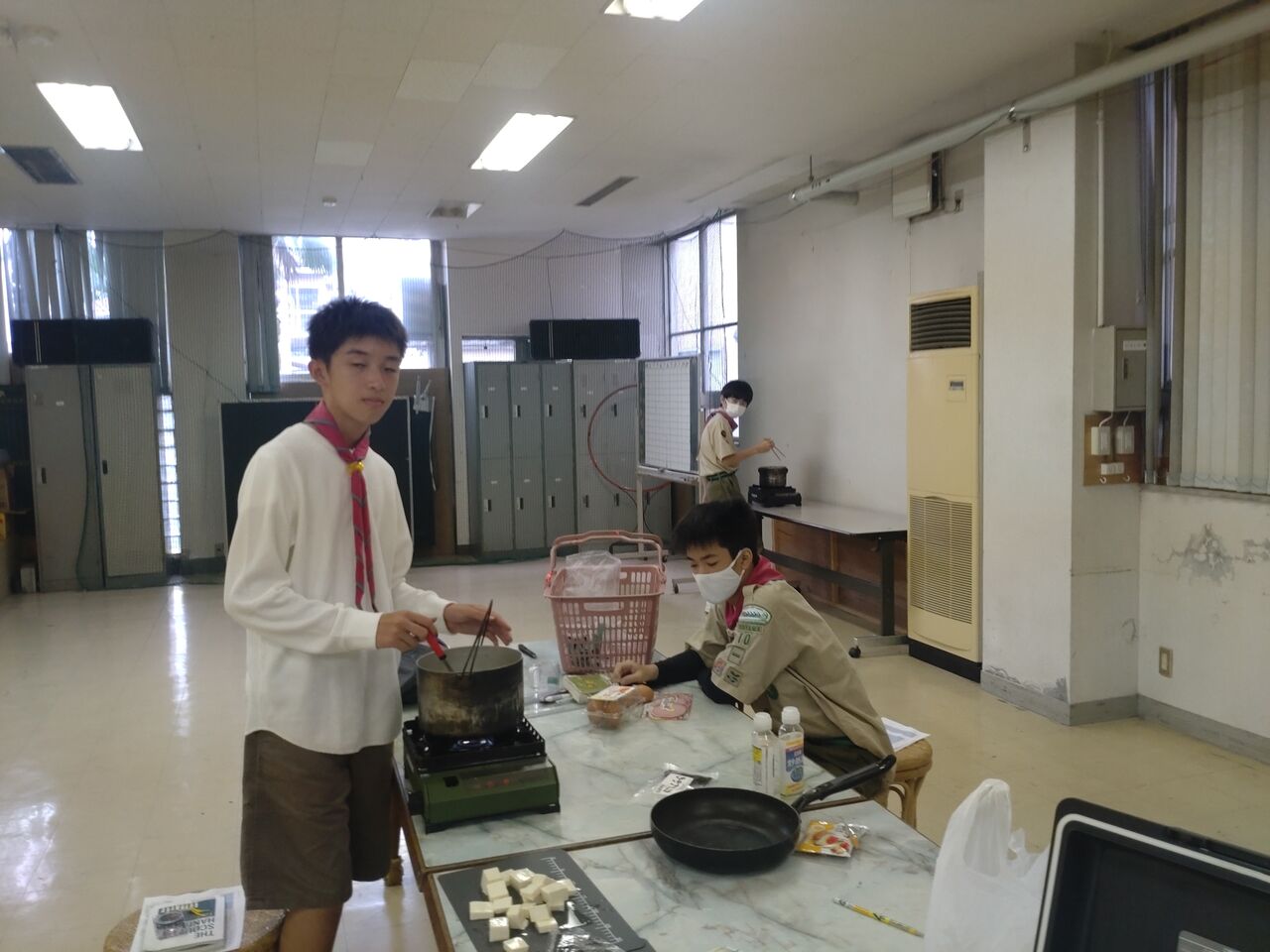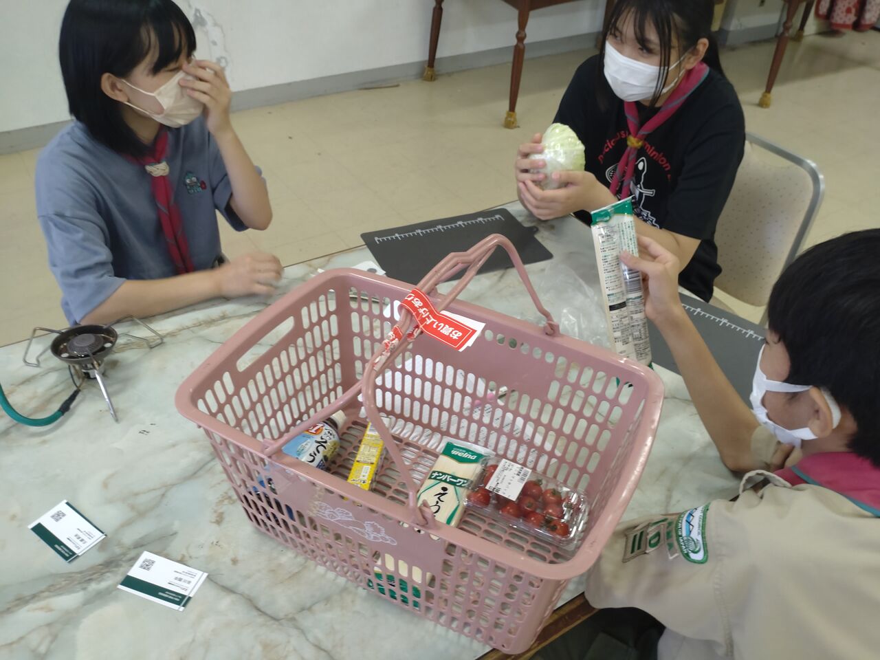 班集会は全員参加、BP祭の出し物の相談と班炊事、ソング練習と歩測を行いました。