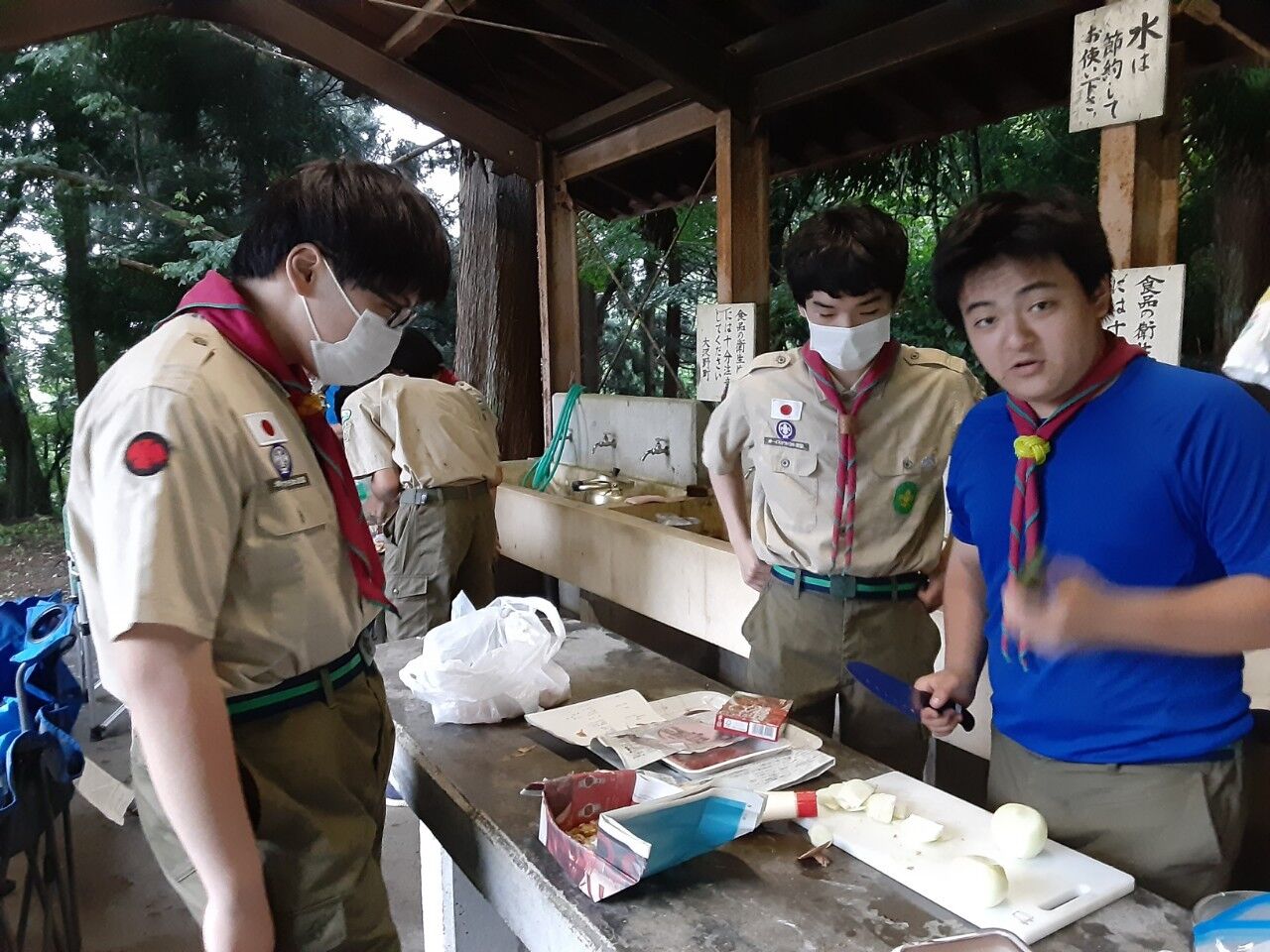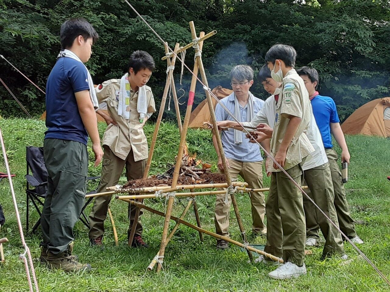 7月16日、17日は猿倉森林公園で隊キャンプを実施。例年になく梅雨明けが早い年になりましたが、暑くなったり大雨になったり、天候が不順です。今回の予報は大雨。が、朝は予想をくつがえして、青空の見える暑い日となりました。今回のプログラムはスカウトが計画した内容で進めます。計画通りいくかどうかはまずは実施。真夜中に豪雨に見舞われ大変でしたが、指導者の心配をよそにスカウトは、テントで快眠。ソロテント、食堂フライ、たちかまどもしっかり出来上がり、スカウト技能はさらに向上。コロナ下で活動もあまり出来ませんでしたが、素晴らしい行動でした。これからはさらに進級を目指していきましょう。