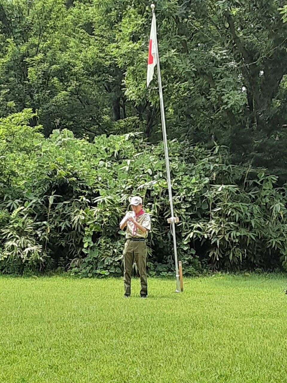 指揮もしっかり、閉会後にゴミを拾い、野営地に弥栄。