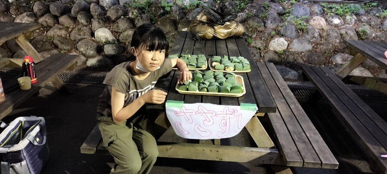夕食は団合同、「不動祭り」です。ボーイ隊担当は笹寿司、疲れてますががんばりましょう!