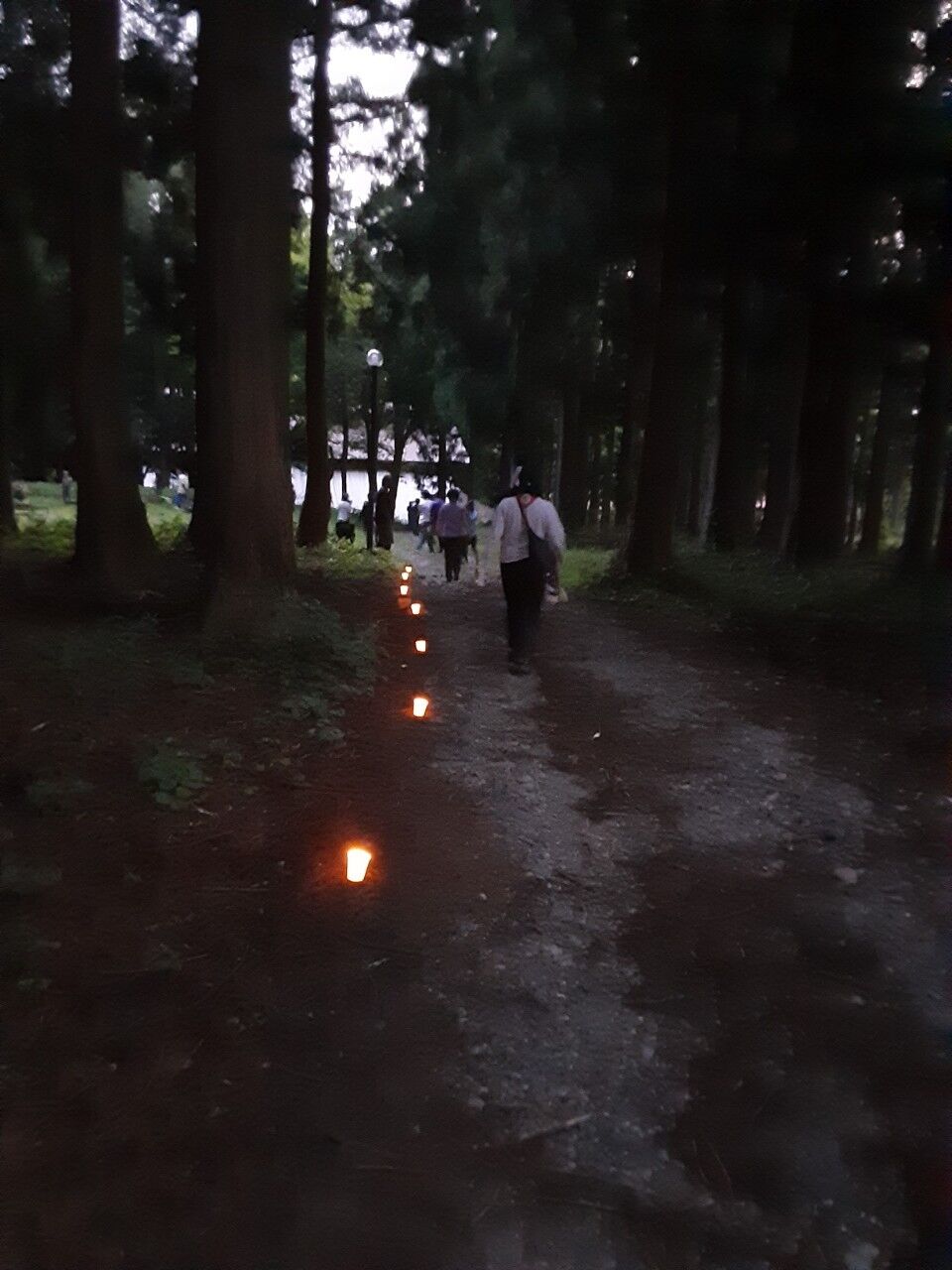 日が落ちてきたら、ろうそくのランタンをたどって営火場へ