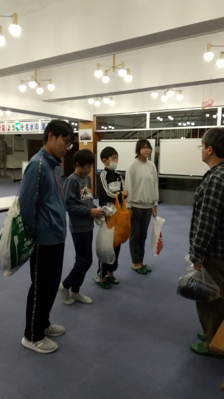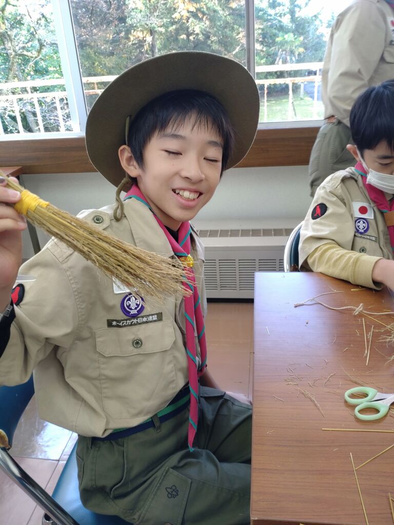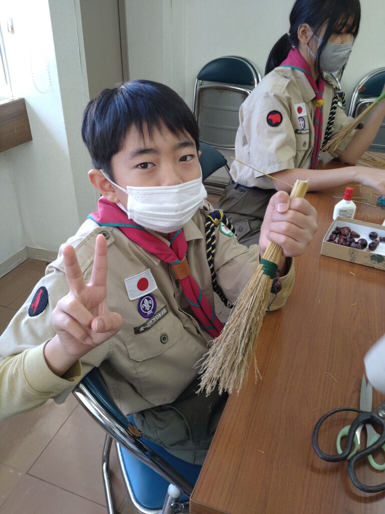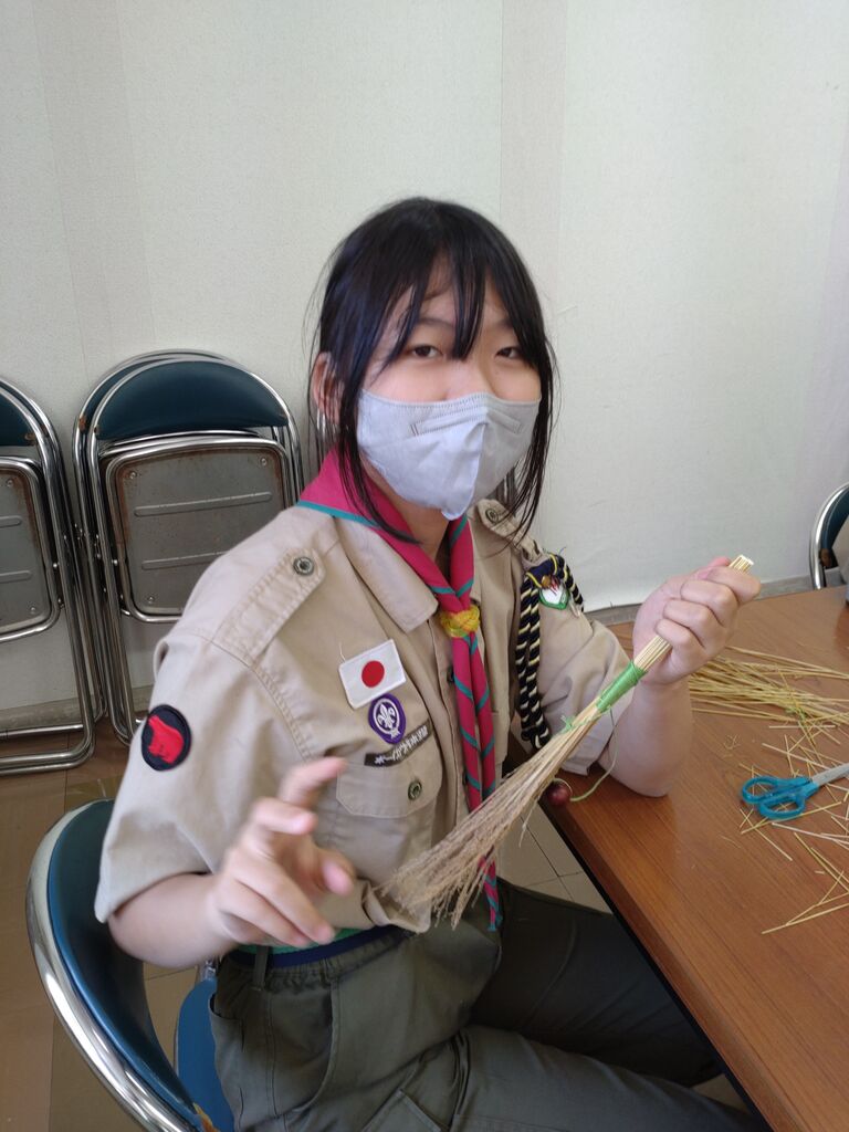 閉会セレモニー 初めての優秀班 表彰リボンはミニミニホウキでした