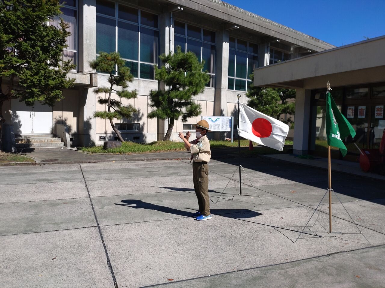 二日目朝礼 昨日とは打って変わって快晴