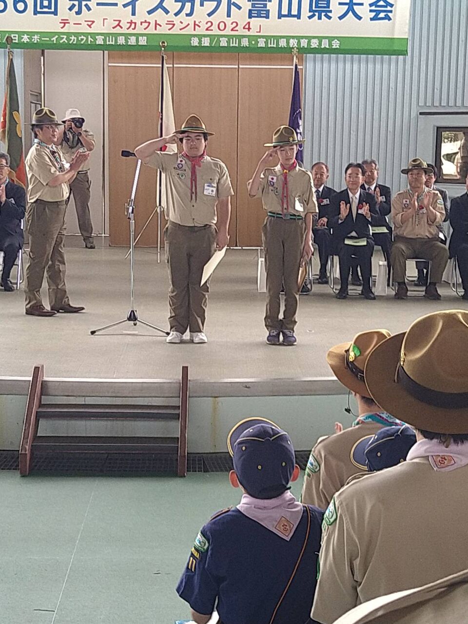次長はスカウト顕彰、そして唱和スカウトとしておきての唱和をおこないました