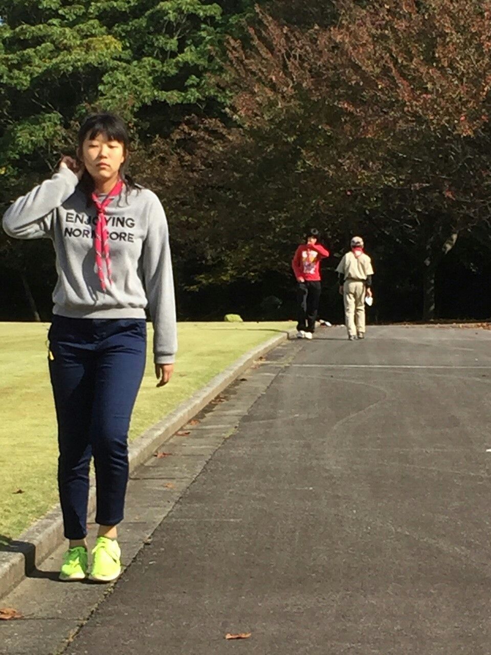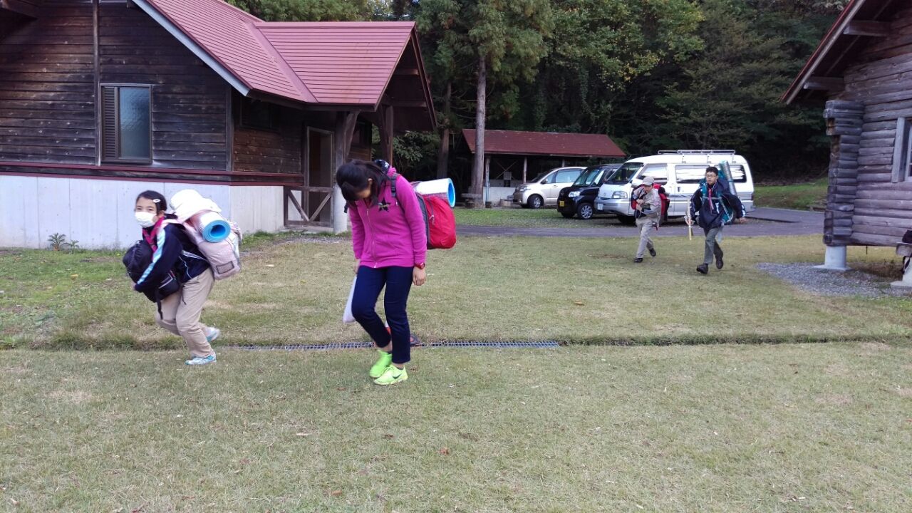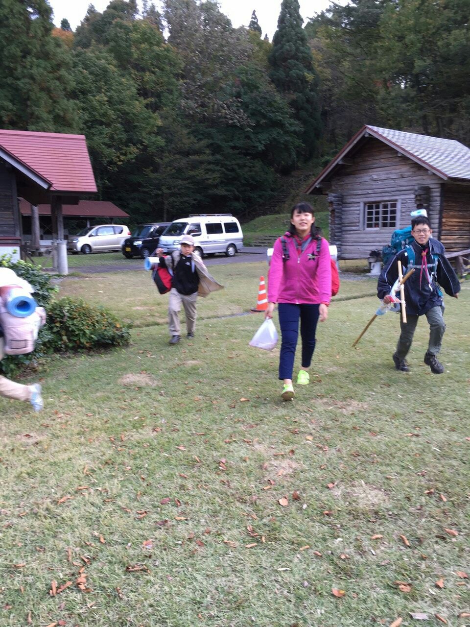 リュックを背負って出発です!余裕の笑顔だね(^∇^)班長、次長!