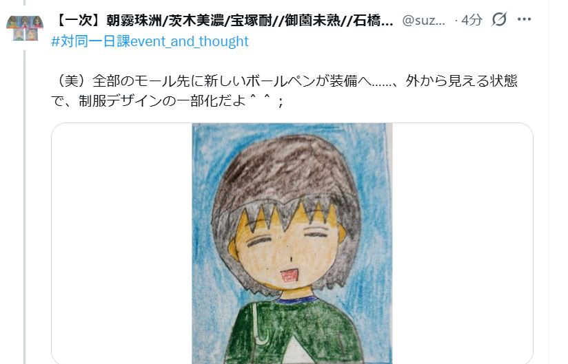 自己垢の他、実況用の一次キャラ垢、也垢グループ「天路組」にて保管室委員/保管係を担当。
