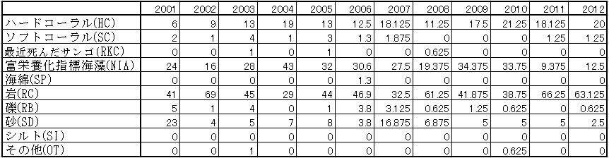 さて、今回のリーフチェックの結果は、以下の通りとなりました。
