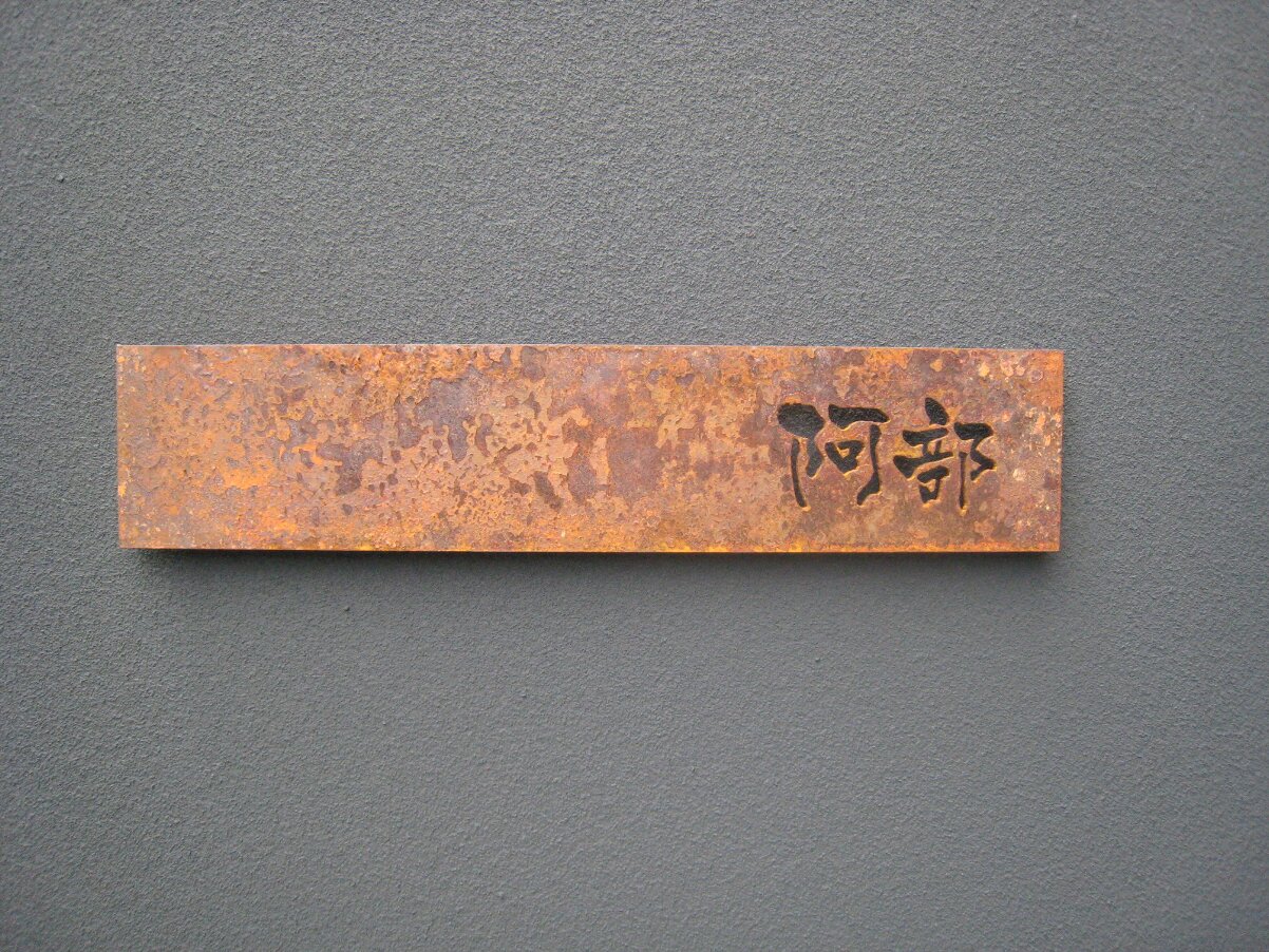 錆び出し鉄板の表札が付きました。