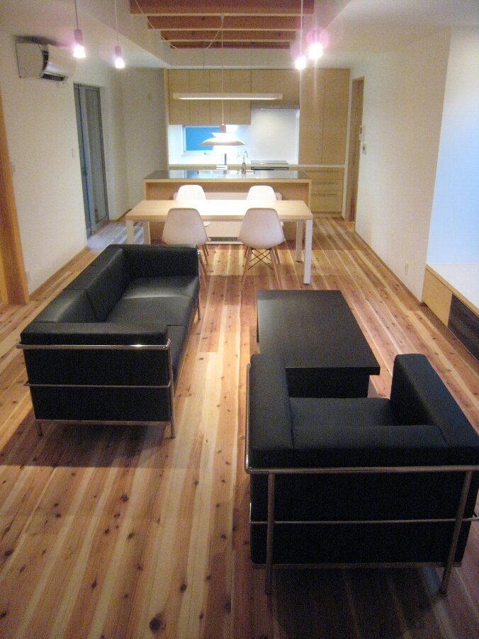 リビングにコルビュジエデザインのソファがいい雰囲気で納まっています。