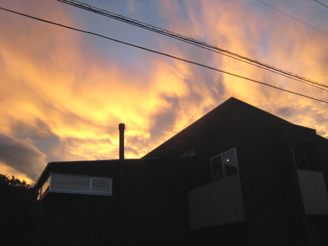 西の空には夕焼けです。