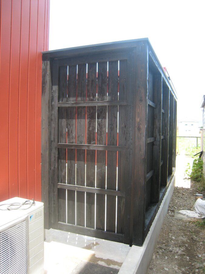 この上に防腐塗料のオスモカラー(黒色)を塗って仕上げます。