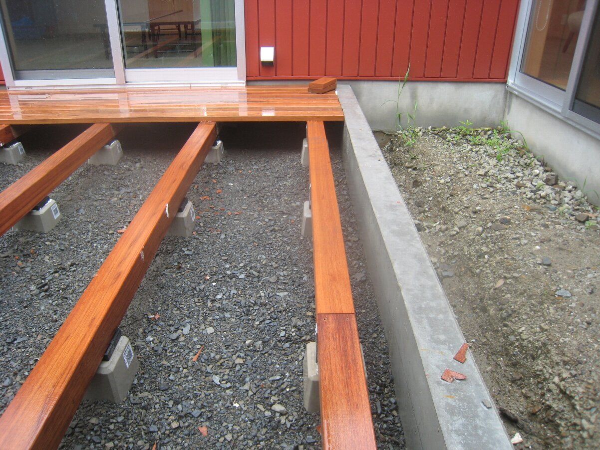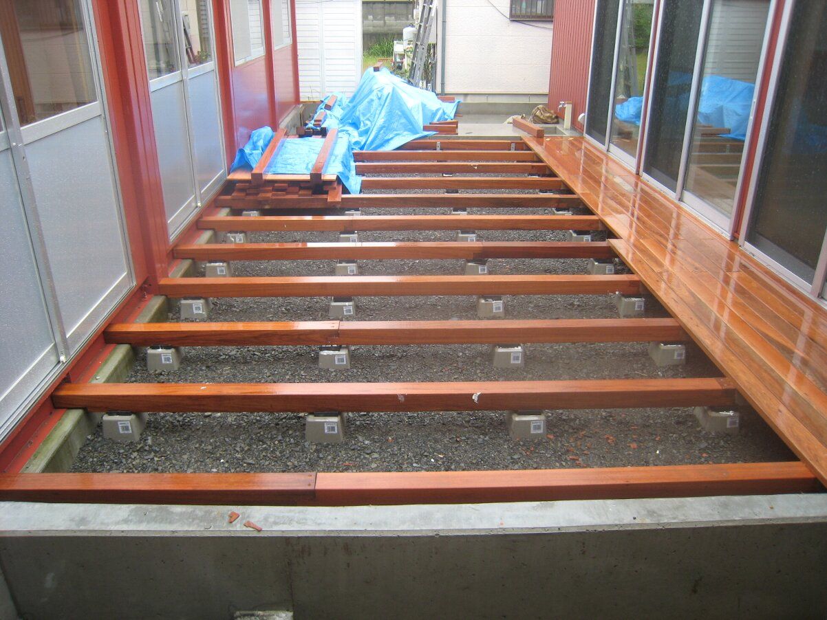 中庭ウッドデッキの床組もいよいよ始まりました。