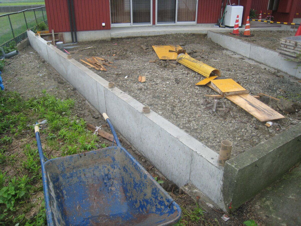 中庭の花壇の型枠が外れました。
