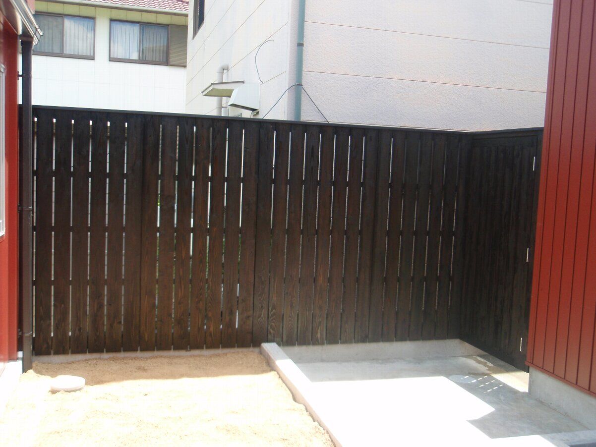 東隣地とを仕切る板塀の塗装もできました。