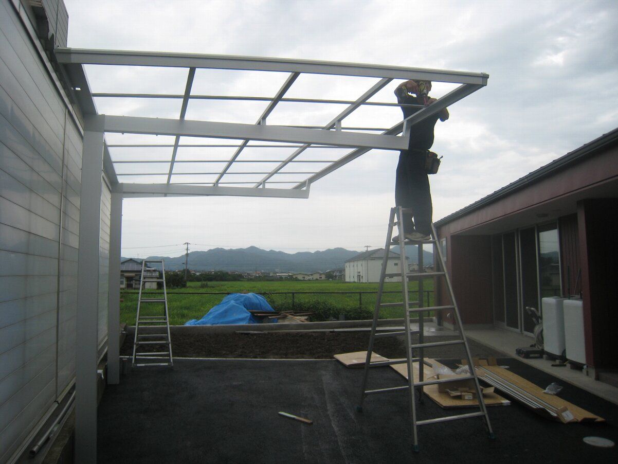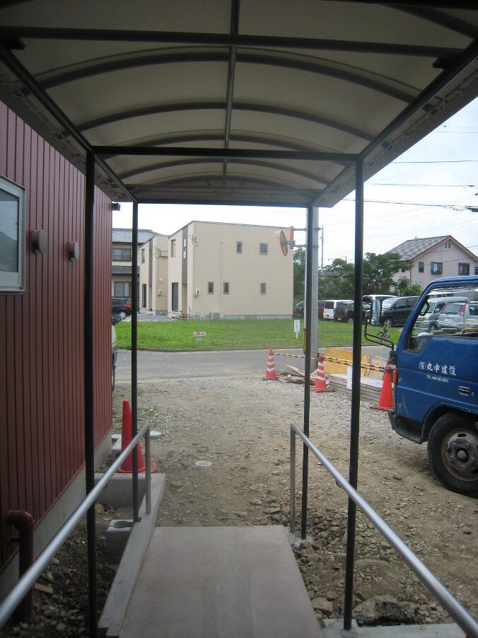 アプローチのスロープ部分にテント屋根が架かりました。