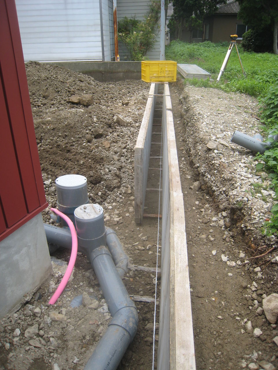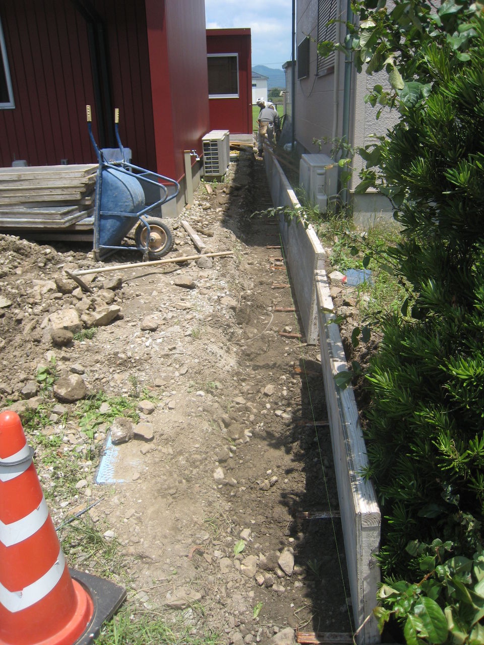 東側隣地境界の型枠を組み始めています。