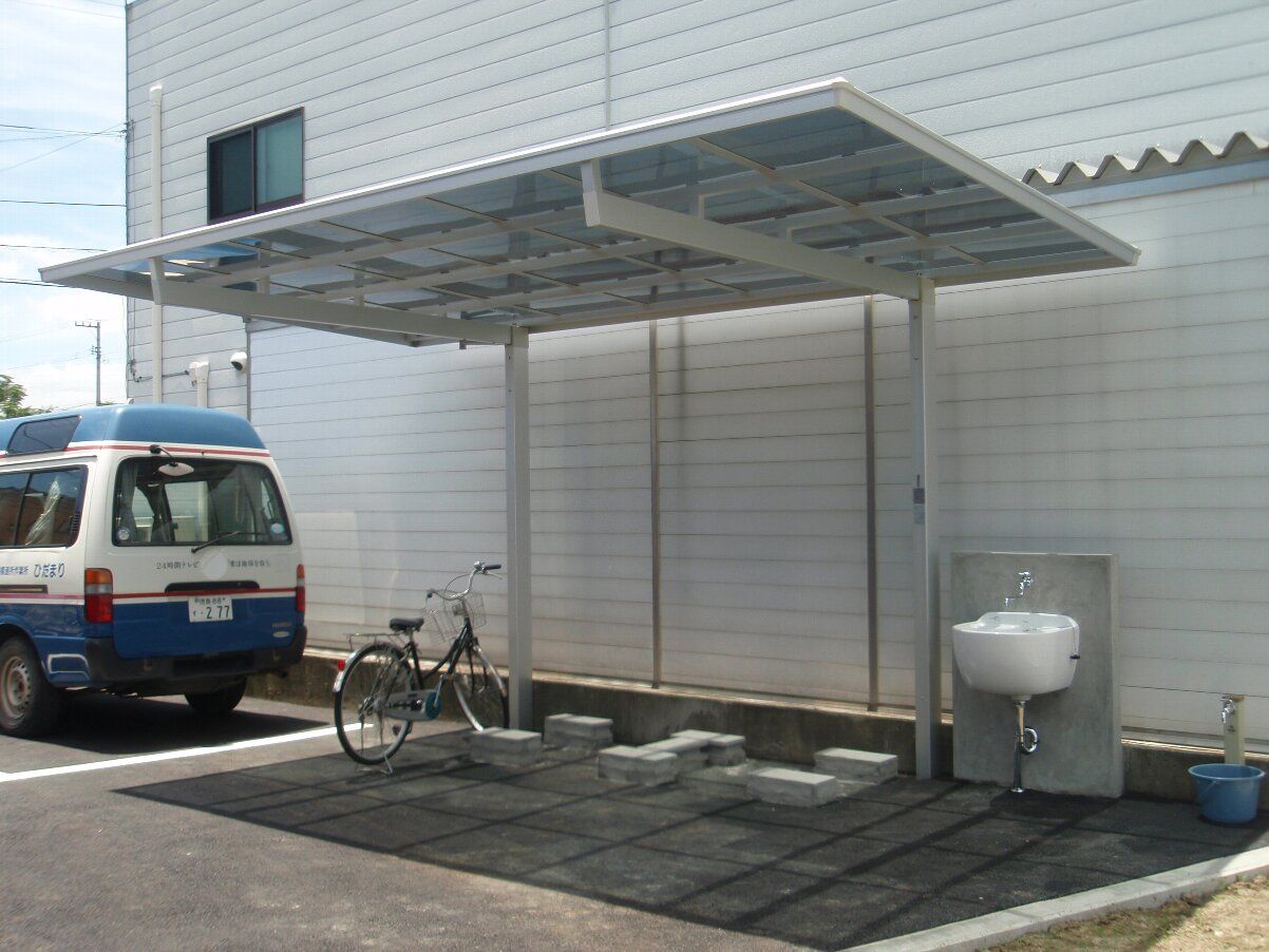 西側の自転車置場と掃除用流しも付きました。