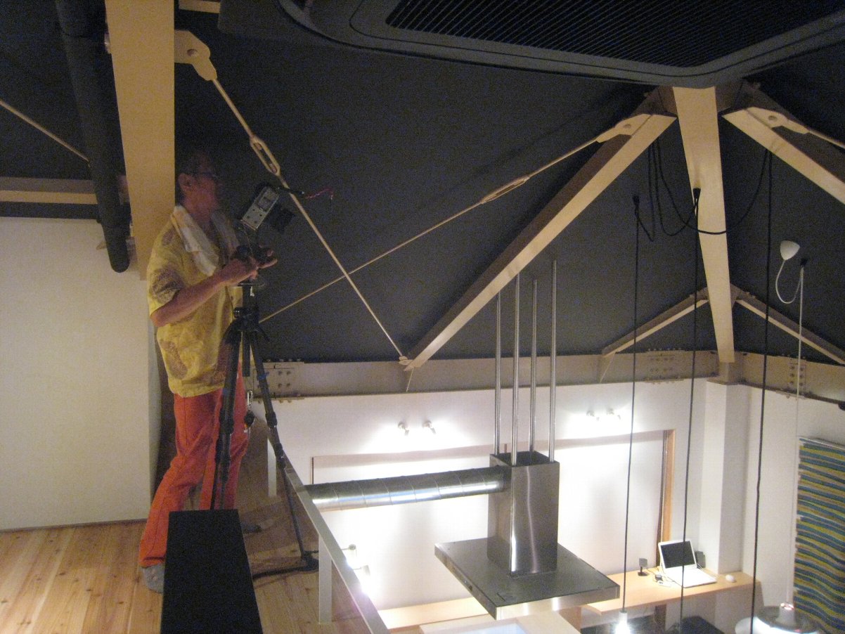 はい撮影準備OK!忍者のようにみんな壁に貼りつきます。
