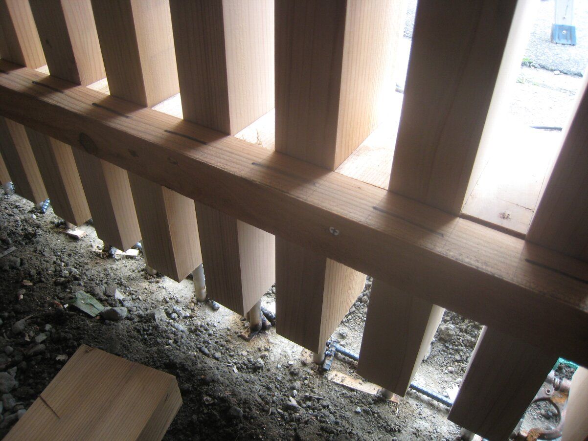 建物の中には物干場の部材、これも切り組みが施されていました。