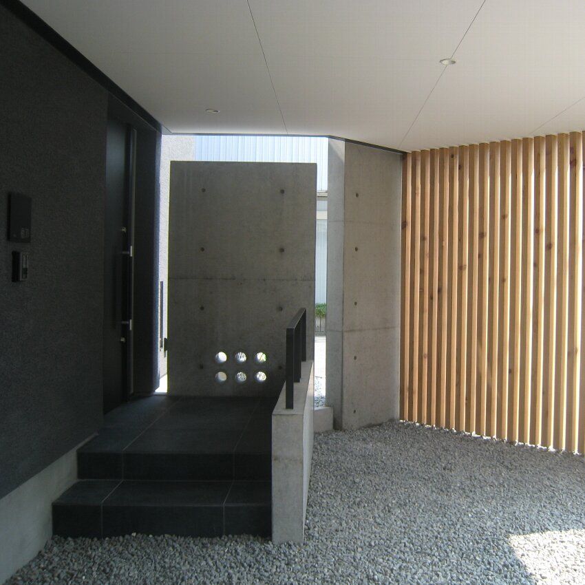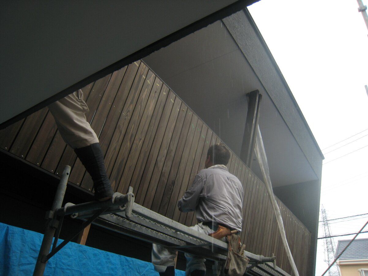 雨水が切れ易いように壁と木材の間はボードを挟んで透かしています。