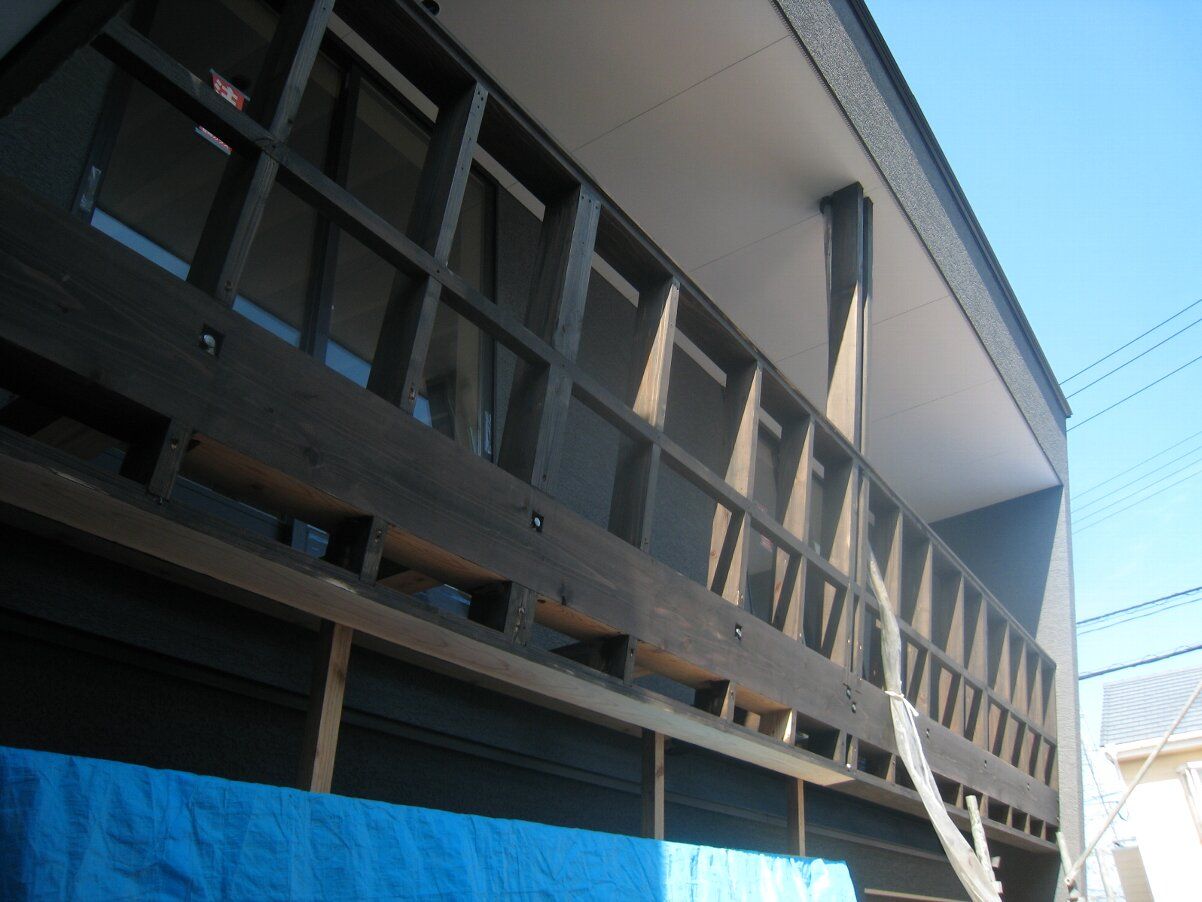 2階バルコニーの骨組が出来ていました。