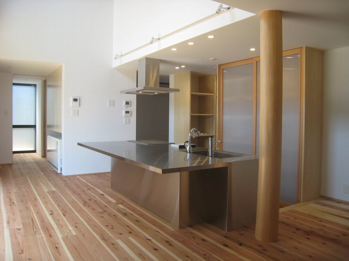 オールステンレスの手づくりキッチンです。上から見るとこんなに大きいです。