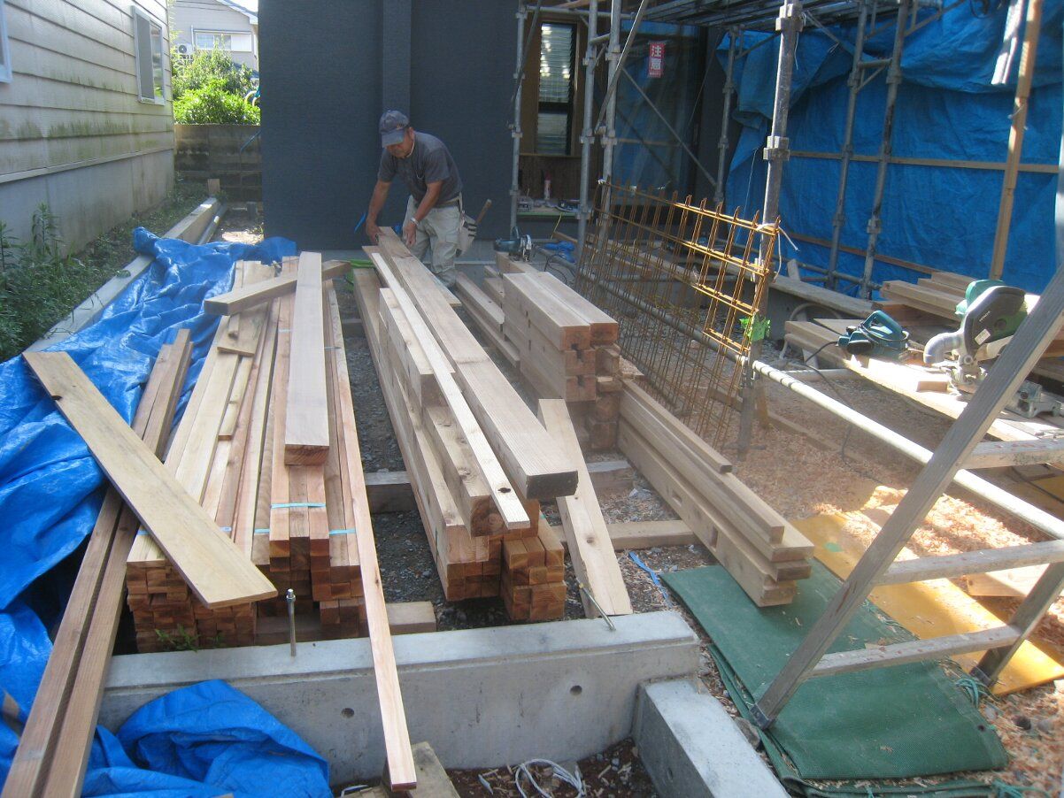 庄野大工の右手前の部材は板塀用で、既に切り組みが施されています。