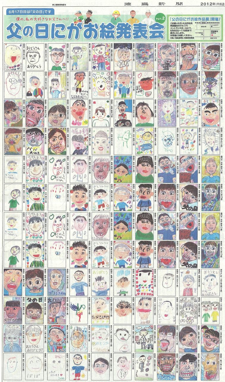 17日の父の日に徳島新聞に掲載された「お父さんの似顔絵発表会」