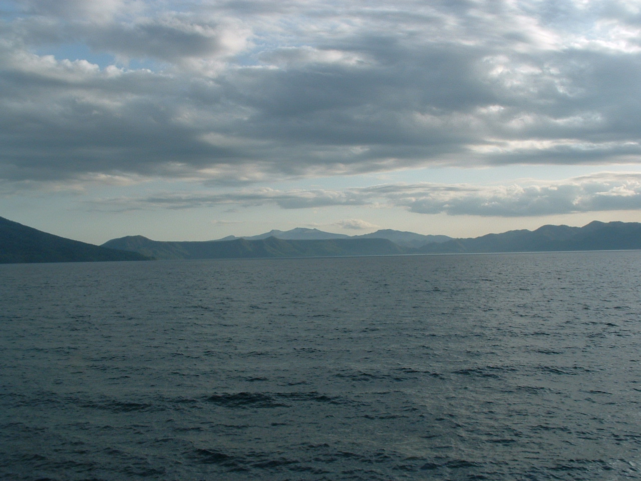 来年、サミットの開催が決定した、洞爺湖の外輪山にそびえるウィンザーホテルが真ん中に写っている四角いお城のような建物です。暗くてシルエットになってますが、バブル時代を象徴するような建造物で、バベルの塔ではなくバブルの塔ですね。