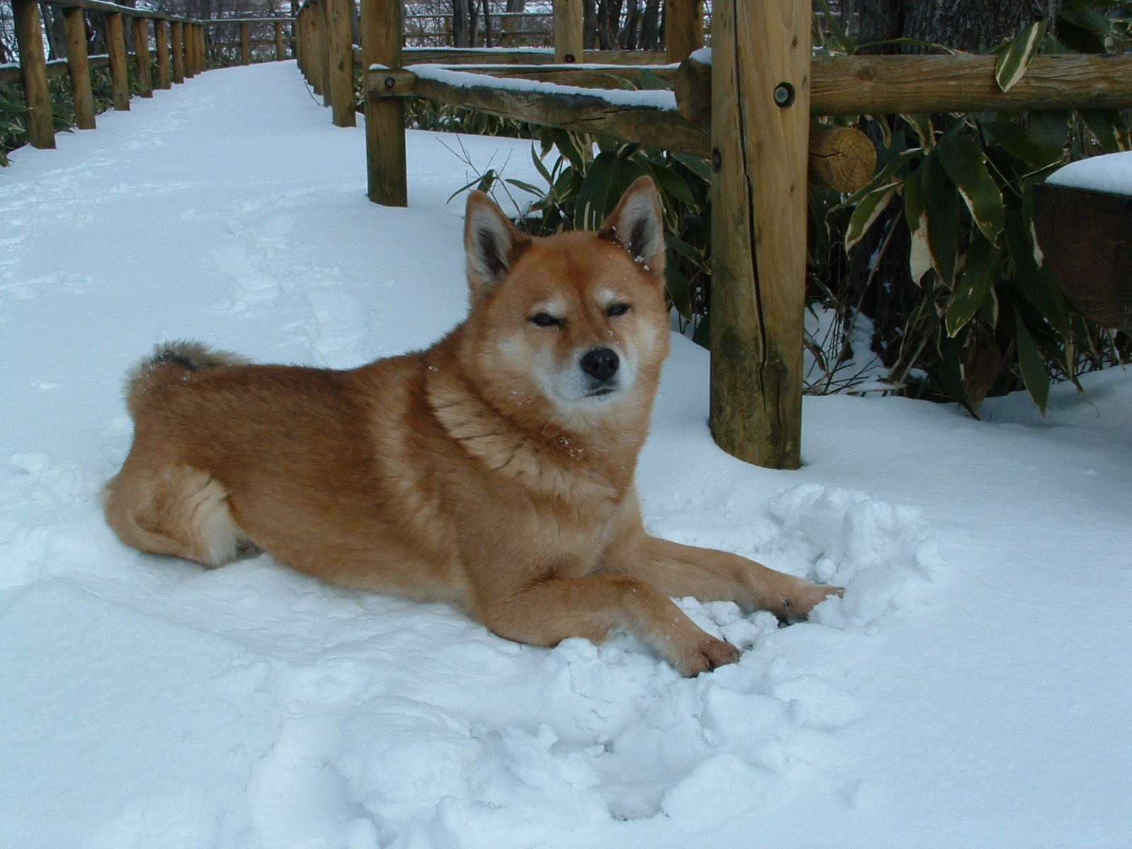新緑と後ろの山の残雪が季節のコントラストを見せてくれます。