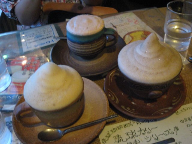 国際通りへ抜けると、偶然、以前宿が一緒だったねんさんと会い、ぶくぶく珈琲という沖縄名物(?)の泡立ったコーヒーが置いてある店で、三人でお茶をする。とりとめのない話を一時間ほどして、それじゃあまた、と別れた矢先に、今度はyoshiくんとマックスくんの乗ったトラックに遭遇。