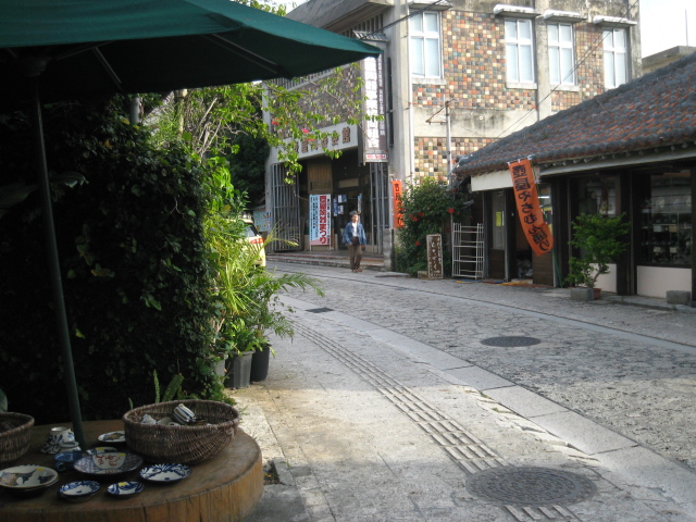 休日。陽気が気持ちよかったので、mameを誘って、「壺屋やちむん通り」という焼き物が栄えた古き町並みへ散歩に行きました。