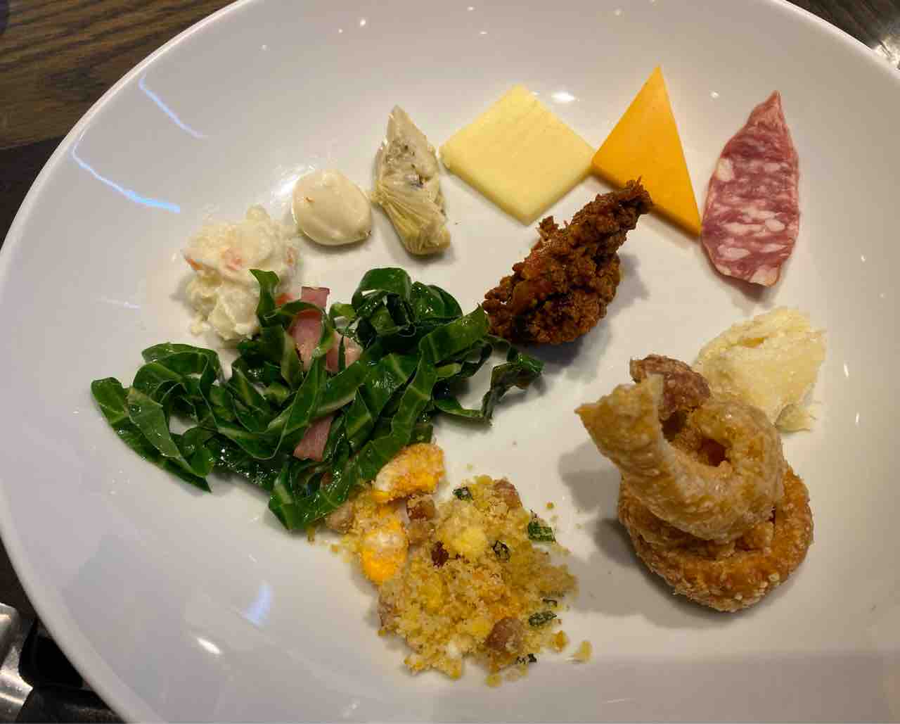 料理のビュッフェ台は大行列なので、たまたま並びが少なかった一角にあった物だけ取ってきました。