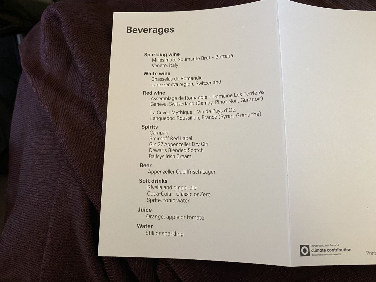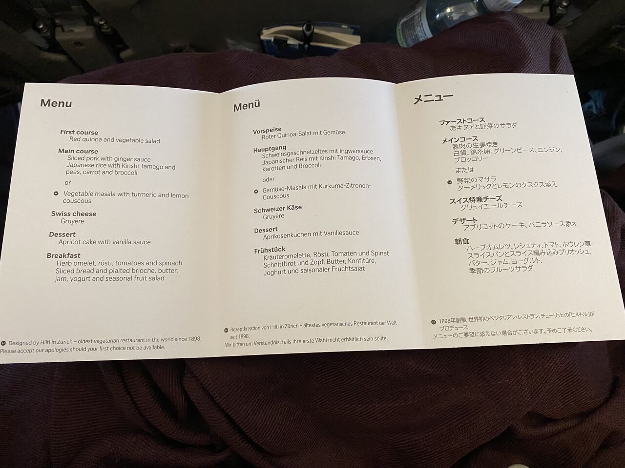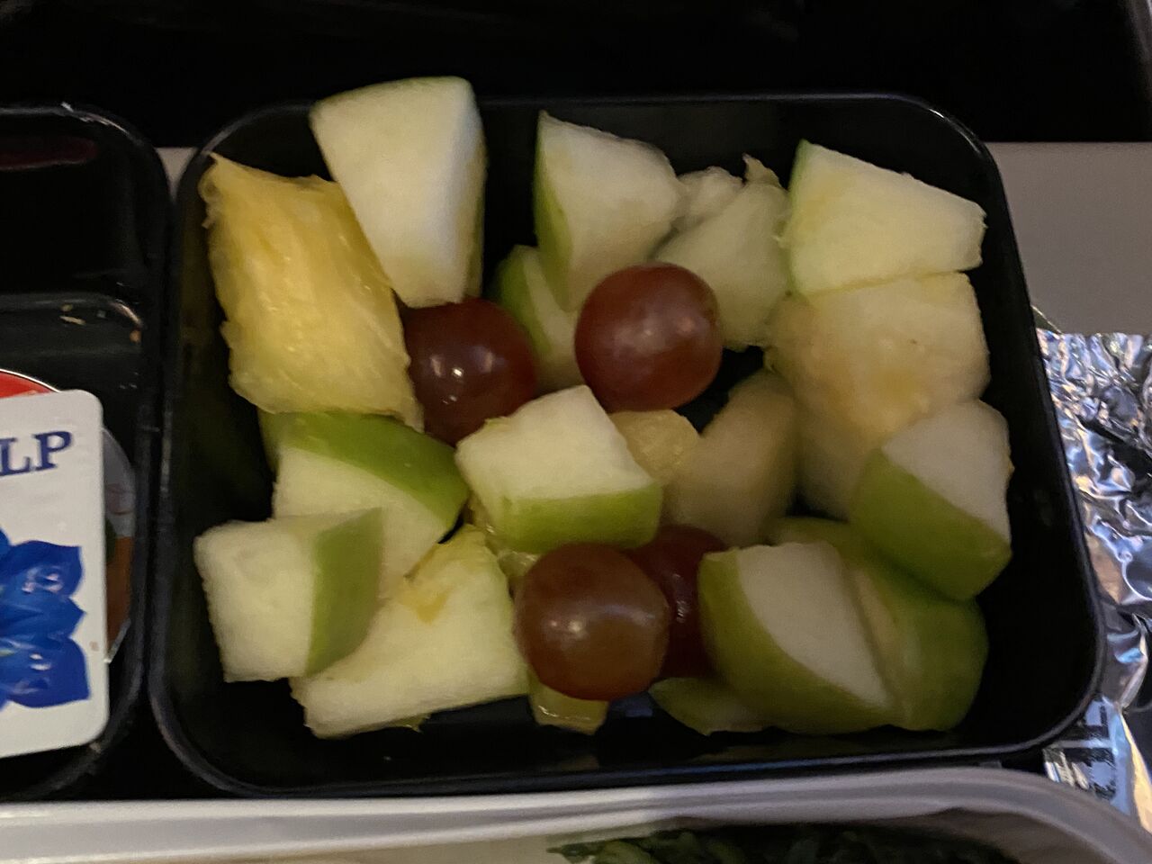自分が食べた機内食は青りんご中心の上の画像の物でしたが、ツレの者はメロンがメインでぶどうは全く入っていませんでした。スイスっていろんな物事に精密で厳格なイメージがありましたが、今回の旅行では多々アバウトなんだなぁと思うことがありました。
