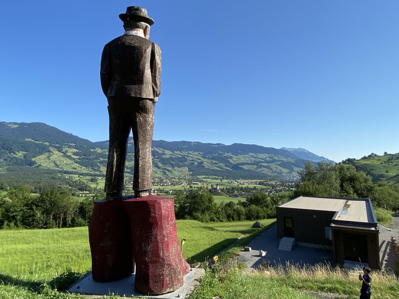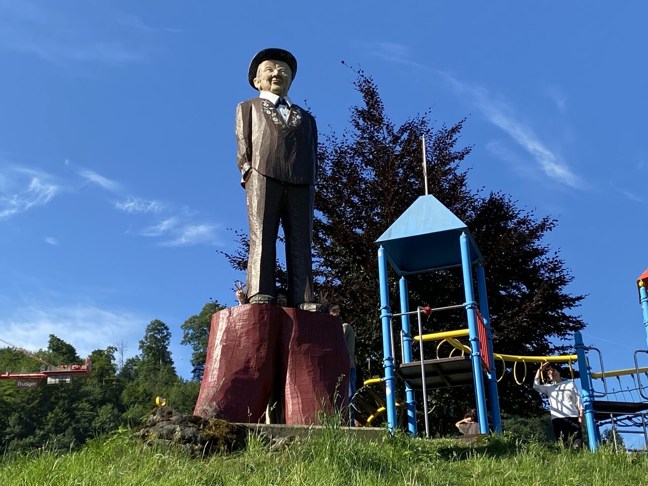 サービスエリアの前の公園には誰だか知らないオジサンが立つ像が。