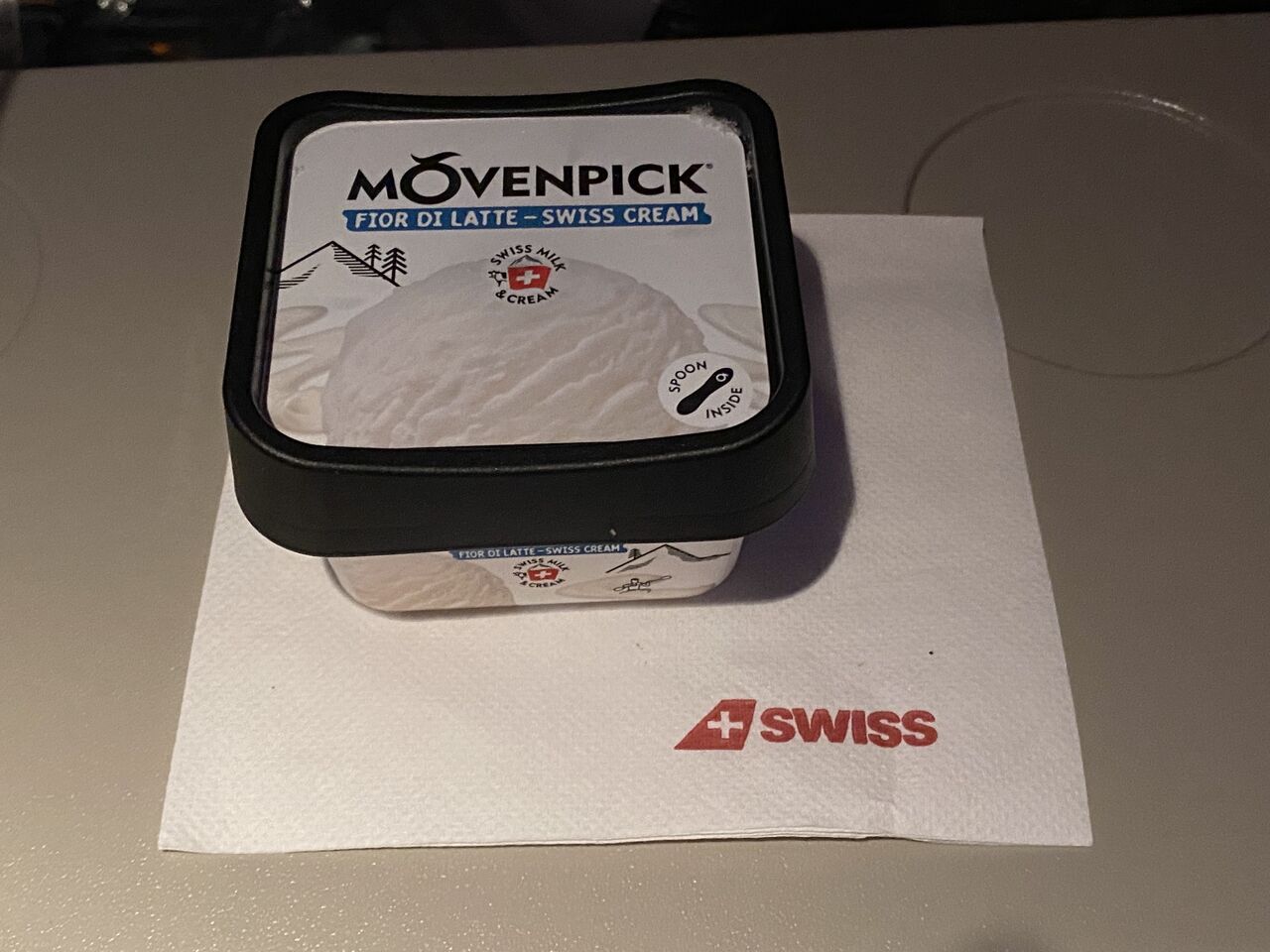 スイスではいろんな物を食べましたが。機内食のこのチーズが美味しかったです。