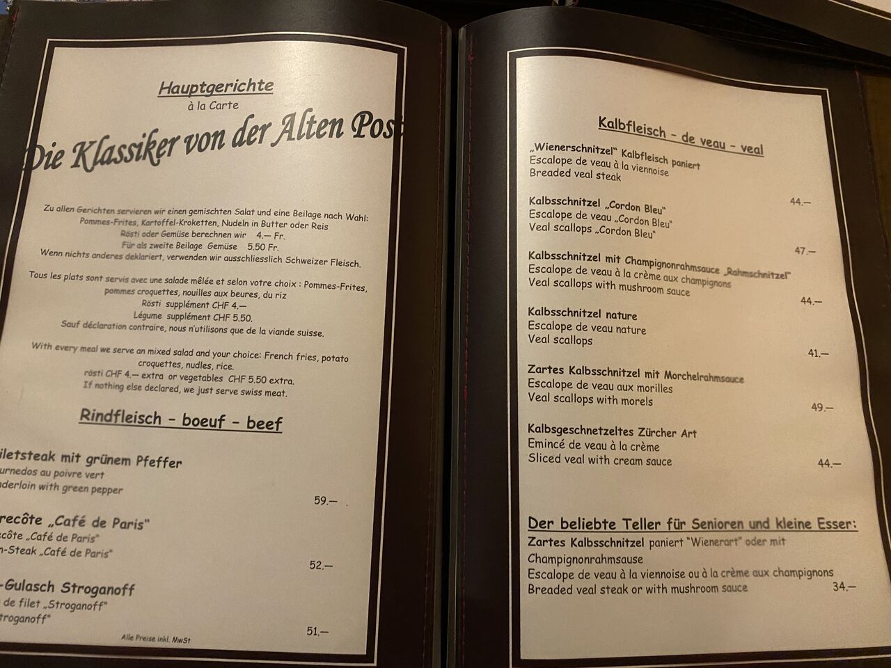 Restaurant Alte Post(アルテポスト)@グリンデルワルトで夕食