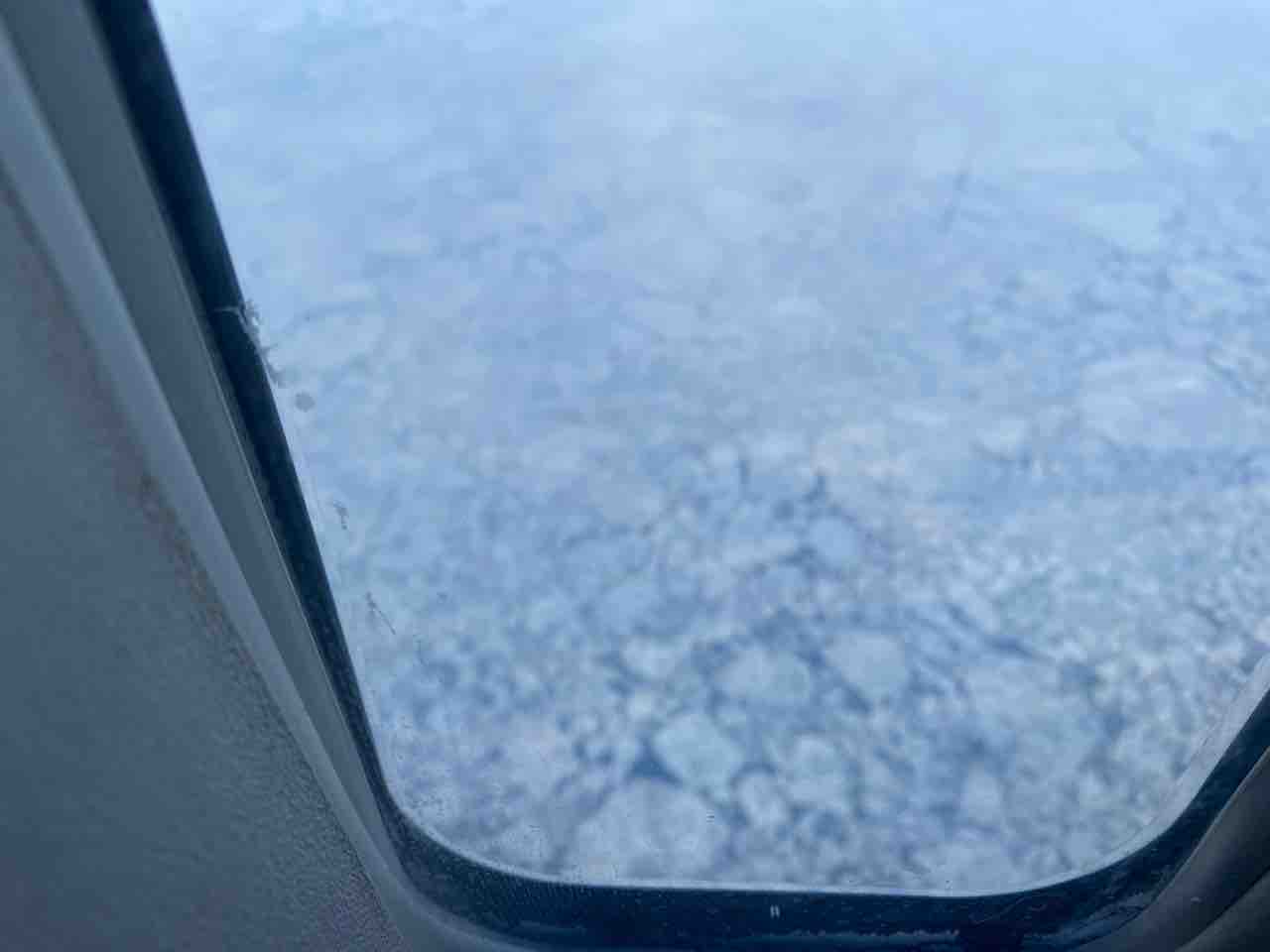 北極圏上空で流氷が見えました!